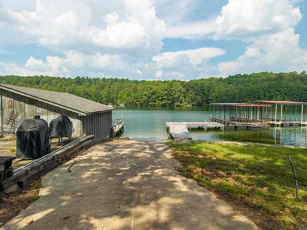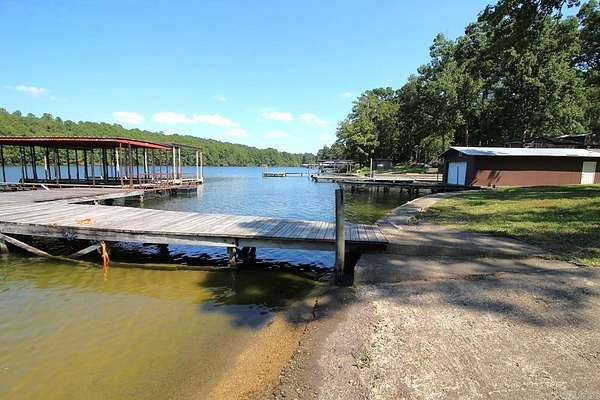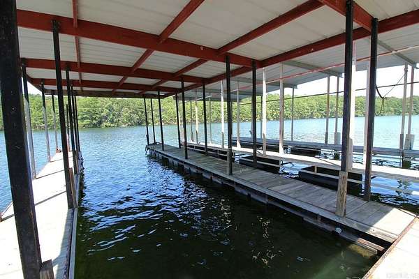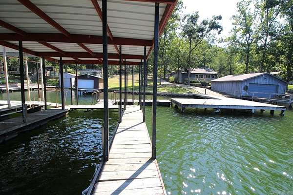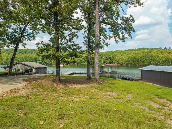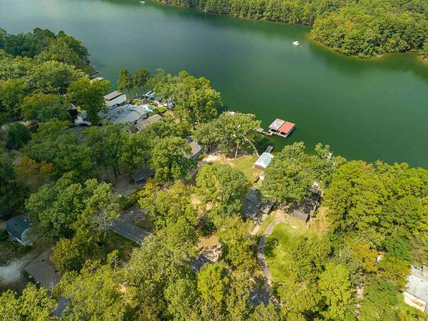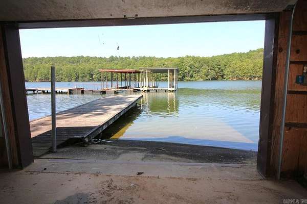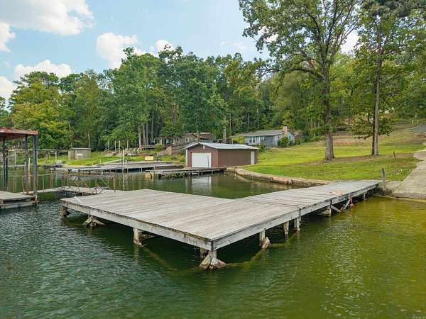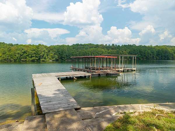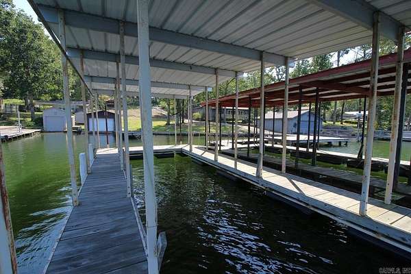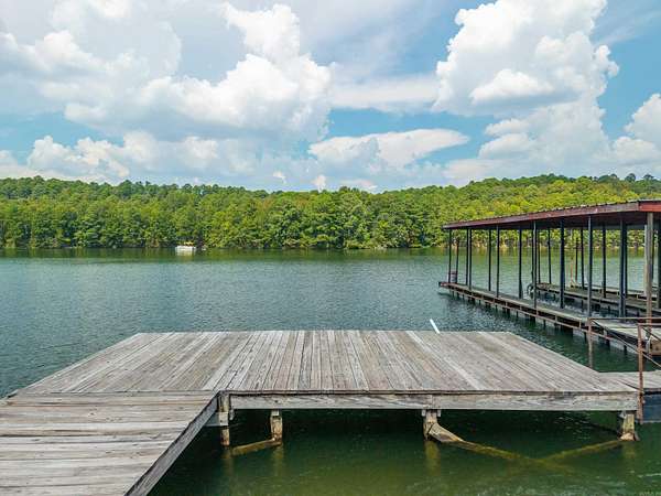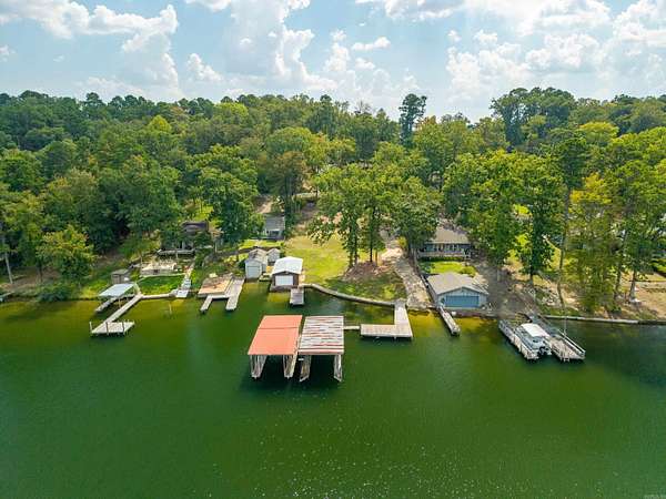 Lake lot on Lake Hamilton ready for your new home. .58 acre with 107 feet on the lake. Launching ramp, swim dock & two stall covered boat dock, concrete seawall all permitted. Most of the lot is above flood plain giving plenty of room for a home & gentle walk to the lake. City water meter & electrical meter pole in place. Pressure city sewer at the street. Located a short drive from Garvin Woodland Gardens. Survey on file. 16X35 ft. shop with roll up door that opens to a launching ramp into lake. 11X7 shop door. 8X32 pier adjacent to shop. 32 ft long pier out to 12X24 swim platform. Both boat stalls are 9'8" wide X 34 long X 9'6" high. Winter water with water depth in stalls at 9+ feet. Entergy permitting info on file.