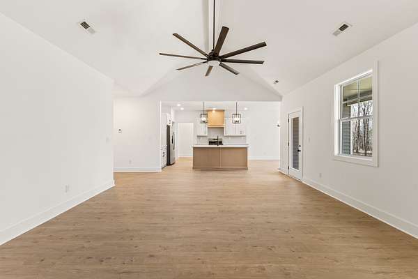 This 4-bedroom, 3-bath home offers the kind of upgrades and finishes you’d normally expect in a custom build—without the custom-home price tag. From the moment you arrive, the inviting front porch and clean modern farmhouse exterior create a warm first impression. Step inside to an inviting open-concept floor plan filled with natural light. The spacious kitchen features a large island, modern cabinetry, stylish lighting, and stainless steel appliances, making it perfect for everyday living and entertaining. The kitchen flows seamlessly into the main living and dining areas, as well as a mud room off the garage with the walk-in pantry and laundry room, creating functionality. The spacious primary suite located on the main level offers a relaxing retreat with a beautifully designed bathroom featuring a double vanity, tile floors and shower, and a massive walk-in closet with built-ins. If you’ve been searching for new construction that feels elevated but still practical, this home checks all the boxes. Modern finishes, smart layout, and trusted craftsmanship make this a place you’ll be proud to call home.