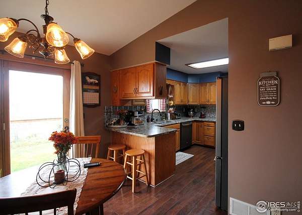 Est $3,070/moOne of a kind, 2 acre property on the edge of Haxtun! 4 bed, 3 bath, MOVE-IN READY home! Beautiful, newly finished basement with large family room, custom wet bar, full bath with soaker tub, large bedroom with egress window, office area, bonus stairs into the garage. Ramp in garage. Binzebo outside, fenced yard, sprinkler system. Awesome insulated 100x60 steel shop, in-floor heat in 1/2 of shop. More storage in a 72x32 Quonset with concrete floor. Plus corrals, livestock sheds, barn, for 4H animals!