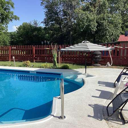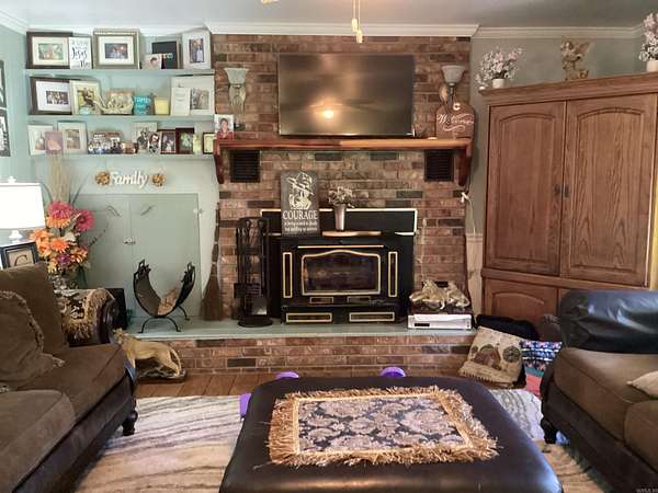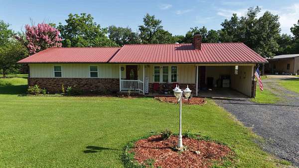 Discover space, comfort, and endless potential at this beautifully maintained 2 bed, 2 bath home on 1.54 acres--one of the largest lots in the area. Featuring 1,636 sq ft, handscraped wood floors throughout, a wood-burning fireplace, and a spa-like primary suite with jetted tub, this home is both functional and inviting. The kitchen includes ample cabinetry and a custom coffee bar. A bright sunroom overlooks a 14'x28' fenced in-ground pool with covered patio. Bonus features include a large laundry/bonus room, 16'x24' wired storage shed, and a 30'x40' red iron shop with roll-up door, 200 amp service, plumbing, and 20'x30' overhang--perfect for a business, studio, or storage. Located on a corner lot with dual street access and a circle drive, just minutes from downtown Mena, Ward Lake Bike Trails, Ouachita National Forest, and Queen Wilhelmina State Park. Additional features include bullnosed sheetrock, attic insulation, a metal roof, carport, city utilities, and Ward Creek as your backyard boundary.