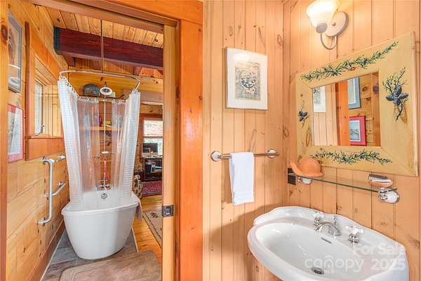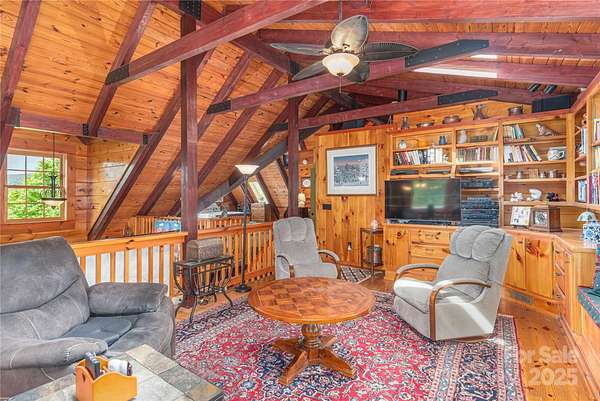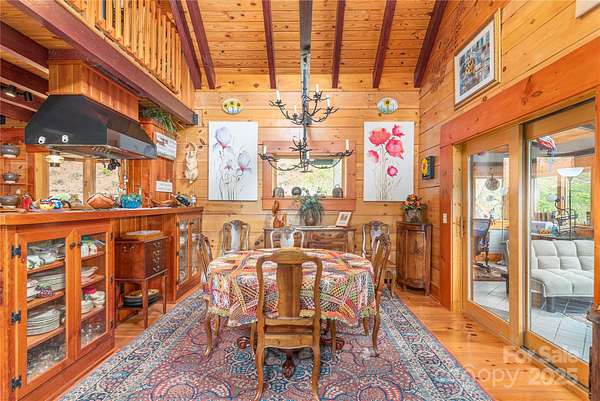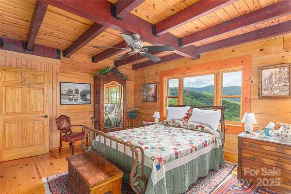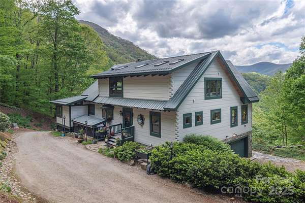 This custom designed log home situated on 0ver 10 acres located in the Hemphill area of Waynesville NC features 3 Beds 3 .5 baths, 2 main bedrooms, Vaulted ceilings in living room, dining area and upstairs bedroom, cork and wood flooring, long range views, High Efficiency (17 Seer) Heat Pump system(New Oct. 2025), Tullivi (Finland)Soap Stone wood heater, Chefs Kitchen, Viking gas Oven/Range, 2 sinks, Soap Stone Counter tops, Trex Deck, Enclosed sun porch, ATV trail on the property, large pantry room with dishwasher and a second kitchen sink. Mature landscaping and very little grass to mow! 2 car garage in basement, drive up main level access. This private retreat is just waiting on a new owner!!
