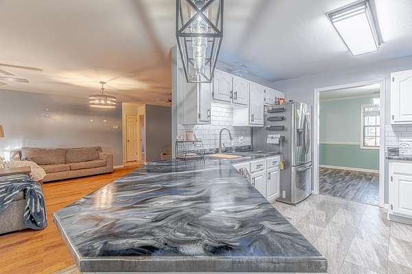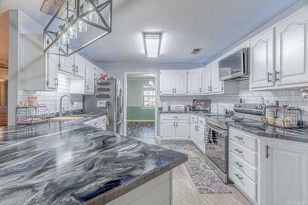 Welcome to Market this all brick home situated on 1.66+\- acres on Mueller, offering rare in-town acreage just three blocks from the hospital and one block from Baldwin Elementary. Exterior features include an architectural shingle roof, full guttering system, front porch, back patio, spacious deck, large shop, detached 2-car garage and a fenced in backyard. Inside, the home offers a well-laid-out floor plan featuring an office, formal dining room, large den, 3 bedrooms, and 2.5 bathrooms. The primary suite includes a walk-in closet and a recently renovated bathroom with an oversized walk-in shower. A spacious laundry room with a sink adds convenience, while updated fixtures and recent improvements are found throughout the home. Seller states utilities are notably low. This property provides the space and feel of country living with the convenience of a central in-town location. Call today to schedule your showing!