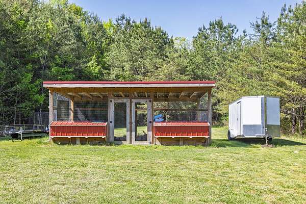 Step inside to discover a spacious living room with vaulted ceilings that seamlessly flows into a dining area and an inviting kitchen. The kitchen features elegant granite countertops and modern stainless steel appliances, making it a delightful space for meal prep and entertaining. Enjoy your morning coffee in the charming breakfast nook, highlighted by bay windows that overlook the picturesque front yard. Retreat to the primary suite, where tray ceilings add a touch of sophistication. The en-suite bathroom is a true oasis, featuring a walk-in tiled shower, dual walk-in closets, and a double vanity that leads directly to the convenient laundry room. The thoughtful layout includes two additional guest bedrooms, office and a guest bath, ensuring comfort and privacy for family and visitors. For those seeking a unique workspace or hobby area, there's a hair salon studio conveniently located in the garage, perfect for beauty professionals or those wanting a dedicated creative space. The outdoor amenities are equally impressive, featuring a large covered deck that overlooks the backyard, making it an ideal spot for gatherings or simply enjoying the serene surroundings. Additional highlights include a detached building with a 1-bedroom, 1-bath studio that comes equipped with stainless steel appliances, providing options for guest lodging or rental income. The property also features a garage/workshop, a greenhouse, and a charming chicken coop--all set amidst fruitful trees including blueberry, peach, pear, and apple. Don't miss this opportunity to own a slice of paradise in Decatur, TN.