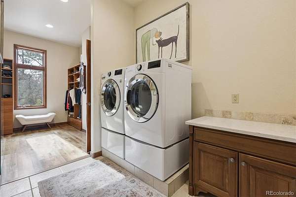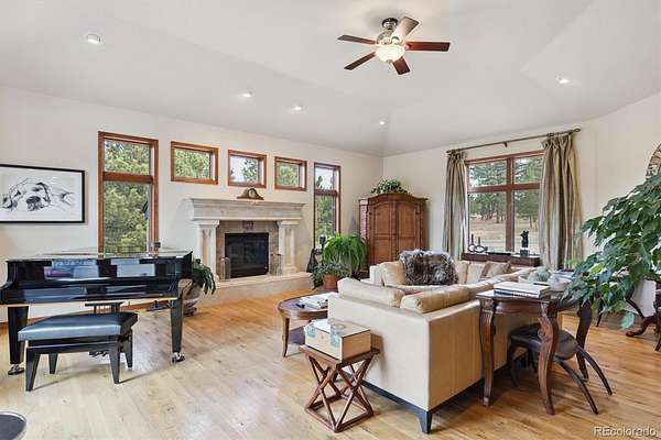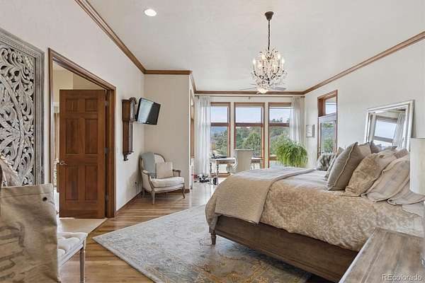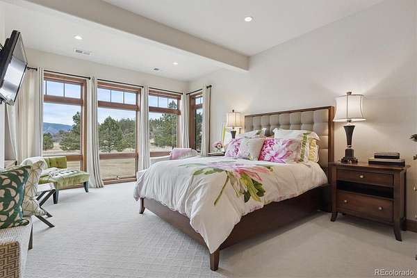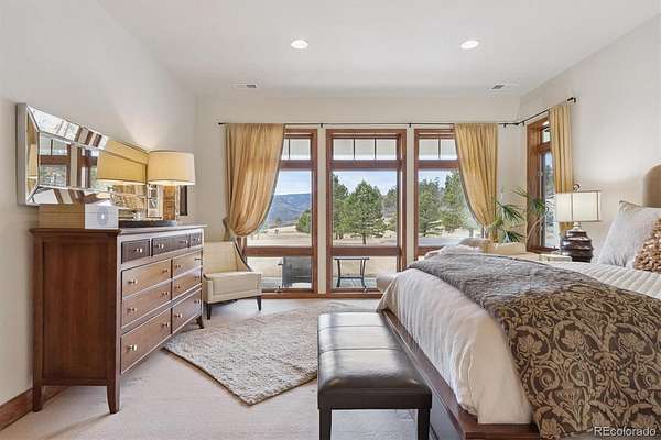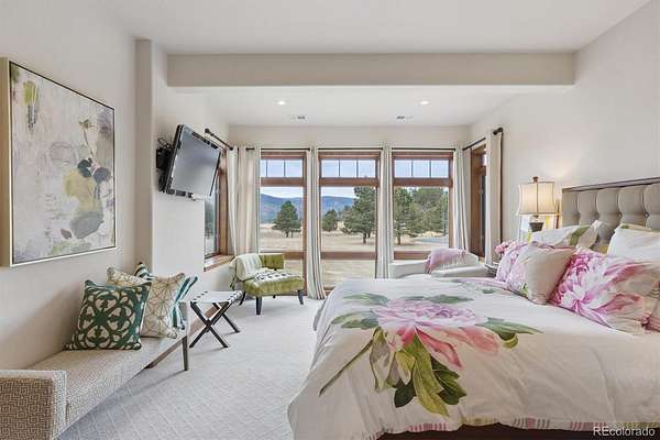 Stunning and Impeccable, this Walkout Ranch Plan has been Carefully Positioned to Absorb the Mountain Views and Open Space. Located on 4.38 Acres of the Most Lovely Land-Pristine Meadows and Towering Pines-Quiet and Peaceful-You Can Breath Here! Custom Designed and Fully ADA Accessible Including an Elevator to Access the Lower Level. An Open and Flowing Plan with Extra Wide Doorways, Hallways, Baths & Exterior Doors. Floor to Ceiling Windows Throughout the Majority of the Home Brings the Outside In. The New Back Deck Wraps Around the West Side of the Home, Partially Covered, Where You May While Away the Days Viewing the Wildlife, Mountains and Sunsets. Mother Nature Provides the Artwork with Ever Changing Skies and Colors. Inside You Will Find Quality Construction - The Great Room, Dining Area and Kitchen all Flow as One for Easy Entertaining. A Commercial Grade Range, Large Island, Breakfast Bar, Oversized Pantry, Built in Fridge, Prep Sink and Nook Area are a Cook's Delight. Adding to the Ambience is the Primary Suite with Floor to Ceiling Windows, Deck Access, and a Large Five Piece Bath with a Roll in Shower and Roll Under Sink. Continue on into the Large Closet with Builtins, Connecting to the Laundry. The Lower Level consists of Three Lovely Spare Bedrooms, all with Floor to Ceiling Windows, One is Ensuite with it's Own Private Bath and Foyer - it Could Easily be an Inlaw/Caretakers Quarters. The Cozy Family Room with Built-ins and Fireplace Makes for the perfect TV Viewing Area, Connecting to the Large Covered Patio Accessed by Both Fully Opening French Doors. Don't Miss the Wine Cellar and the Mechanical Room with Washer and Dryer. The Attached 4 Car Garage is Heated and Finished, Complete with Epoxy Floors and a Ramp. Plus, This Home Comes Fully Furnished with Thousands of Dollars Worth of High End Furniture! Sprinklers & Drips Front & Back, Mitigated for Fire, Public Water and Public Roads, High Speed Fiber, Original Owner, Price of Ownership Abounds!