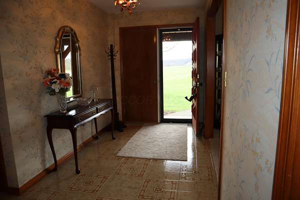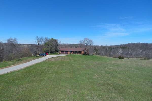 Lot is being split. 3.30 acres on east side of lot is being split off to family member. 1/4 acres pond is on site. One owner home- well built, very neat and clean. All appliances including washer and dryer stay. 3 bedrooms 3 baths all on main level- Partial basement very dry and outside entry. Crawl space is deep and lighted, 22x30 pole building built 2014. Small old barn. Site is mostly rolling grassland, some small woods. Magnificent viiews both front and rear- Rear view is rolling woodlands. Wildlife abounds in area. Make this your country estate today.