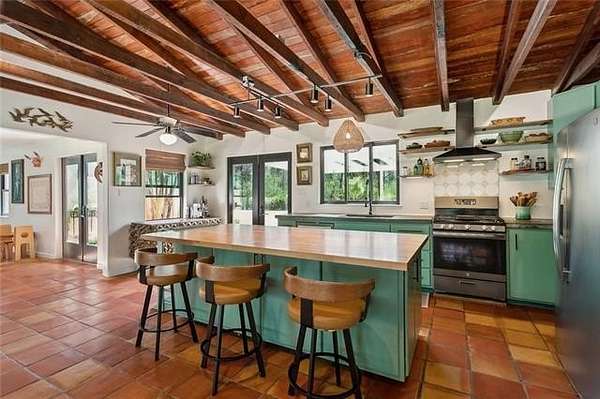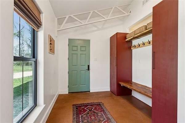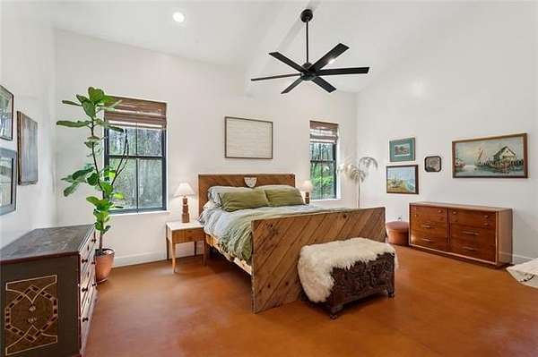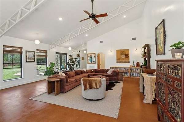 Nestled in the peaceful countryside of Bush, on a lovely country lane, this one-of-a-kind Spanish cottage-style home sits on over 20.5 private acres and offers more than 3,400 sq ft of beautifully crafted living space. Loaded with character and with exceptional attention to detail, the home features handmade countertops, custom cabinetry, and intricately carved doors. The distinctive antique tile flooring throughout is truly a work of art and adds timeless character—plus there is no carpet anywhere in the home.