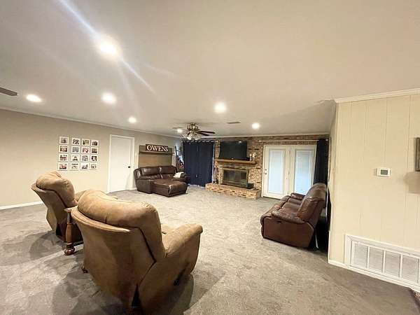So much potential on nearly 2 acres! This spacious 4 BR, 2.5 bath home is on a quiet, paved city street. Room for your large family and room to grow. The home has an oversized den with a wood-burning fireplace, a formal living/dining area that could flex as a home office, home-school room or kids playroom. Home has an attached carport just off another bonus room that would make a great space for a home gym, man cave or game room. New A/C installed in 2020. There's also a 2-car detached garage and a 40x40 shop with a 10x40 covered porch, 3 roll-up doors and 2 walk-thru doors. The shop is insulated, has water and electricity, and is even wired for a 240v welding machine. There's also a barrel stove for those cool nights when the family is entertaining. If you like to fish, the property is lakefront to a private lake. Call us today for your private tour!