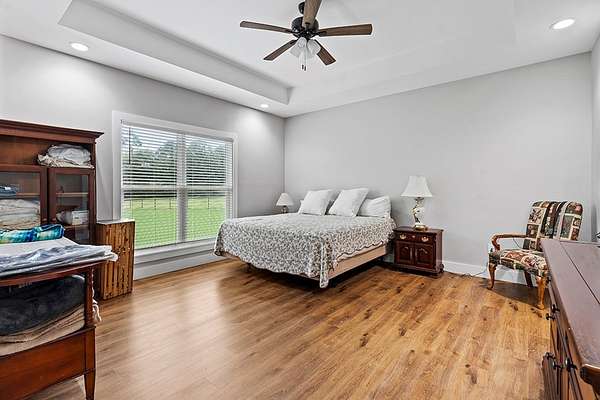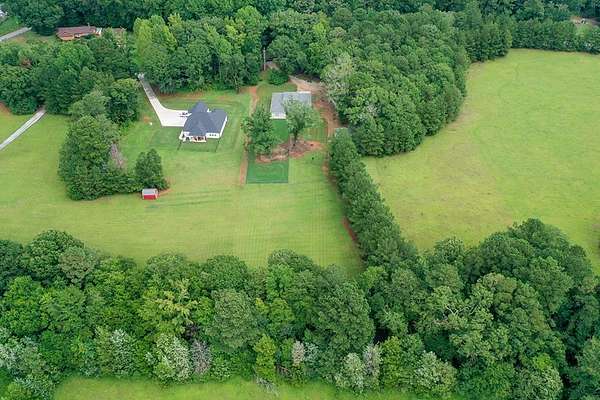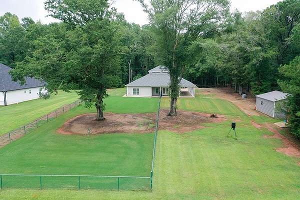 Welcome to country living with comfort and convenience all on one level. Built in 2021, this thoughtfully designed home offers over 2,000 square feet of open living space, perfectly suited for anyone who values easy accessibility or simply desires the ease of single-story living. This home was built with accessibility in mind--featuring wide doorways, no steps to enter from the porch or into the home, and a layout that makes moving around simple and comfortable. Whether you're seeking handicap accessibility or just want the peace of mind that comes with barrier-free living, this property delivers. Inside, the oversized living, dining, and kitchen areas flow seamlessly together, creating a spacious open concept that's ideal for gatherings, family time, or entertaining. Large windows invite in natural light, while the thoughtful floor plan ensures both comfort and convenience. Outside, enjoy a covered wraparound porch stretching across three sides of the home--perfect for morning coffee, afternoon shade, or evenings with friends. Sitting on more than 2 acres, the property offers a mix of mature trees and open yard, with a fully fenced backyard that's ideal for pets, children, or outdoor activities. An outbuilding provides flexible space for a workshop, hobby area, or additional storage, giving you plenty of room to create what you need. With its modern construction, wide-open spaces, and peaceful rural setting, this home is ready to welcome you--whether you're looking for handicap-friendly features, a low-maintenance lifestyle, or the quiet charm of country living.