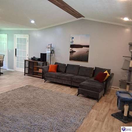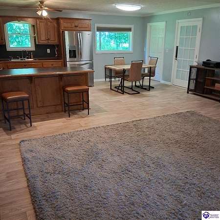 Beautiful home right off the Green River Lake in Campbellsville ky only a few blocks away from Smith Ridge Campground and boat launch. We are a Lake community on a dead end road. If you want a lake home just a few blocks from water it does not get any better. Lots of wildlife here. Beautiful 1.3 acre lot. The house has three bedrooms the addition on the house for the third bedroom makes the house split so the kitchen divides a space between the other bedrooms and the other bathroom so if you have a guest over they have their own bathroom and it's away from everybody it's a very nice setup also it has 2 full bath rooms the quest bathroom just has a shower no tub . Its in with the laundry room.