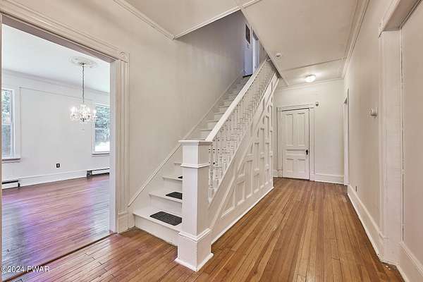 - Bookcases, Built-In Features, Eat-In Kitchen, Entrance Foyer, High Ceilings, Kitchen Island, Natural Woodwork, Pantry, Recessed Lighting