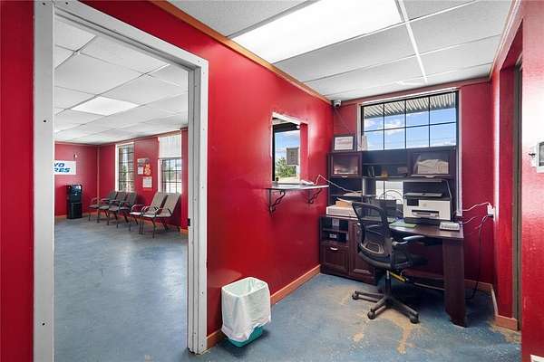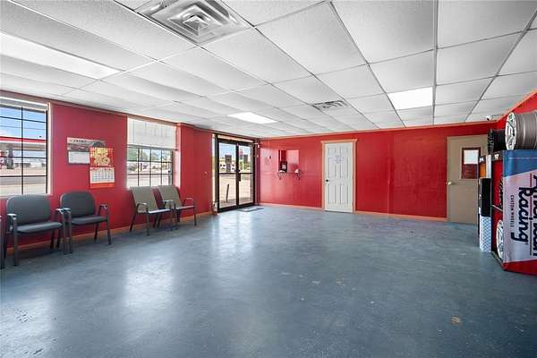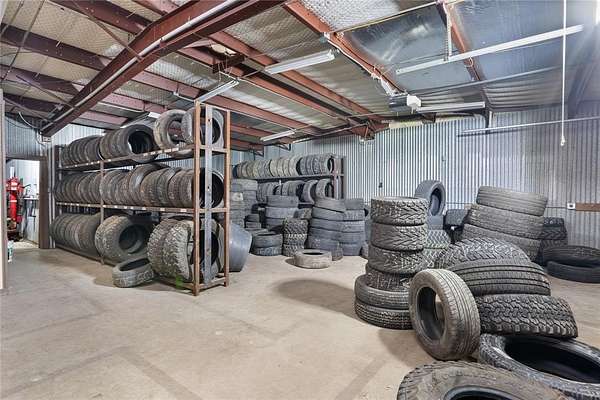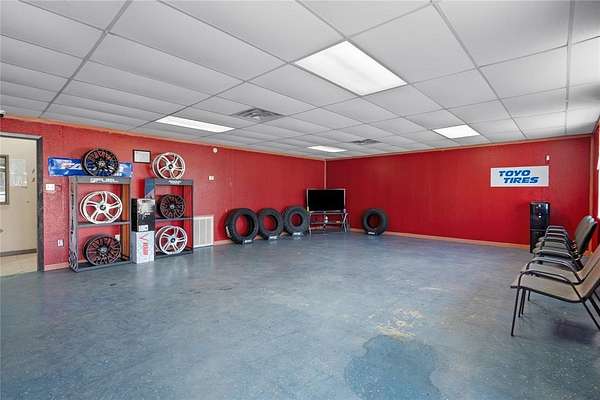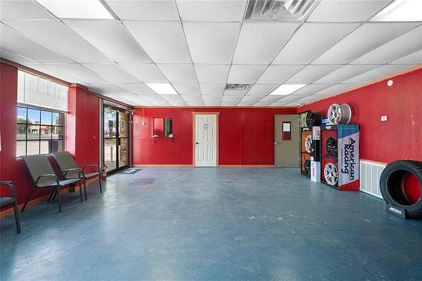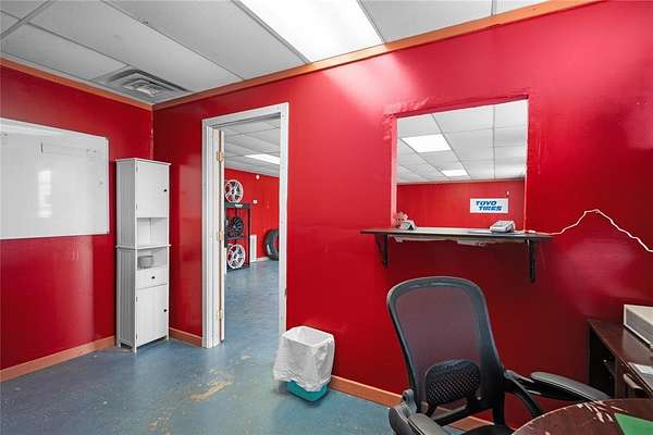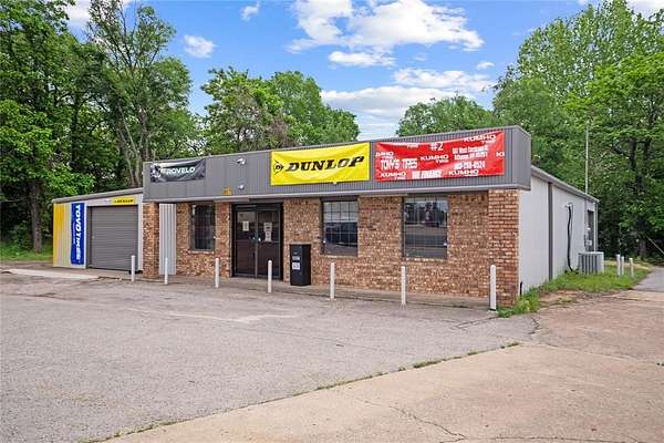 High visibility commercial opportunity. Owner Financing Available. Prime location near many other busy businesses and across the street from a gas station. Currently operating as a tire shop, the flexible zoning allows for a wide range of uses including office, automotive, industrial, or retail. Situated on nearly a quarter-acre lot, this versatile property features a reception area, a full bathroom, storage with garage bay doors and several private rooms that can be used however you like. Cameras do convey.