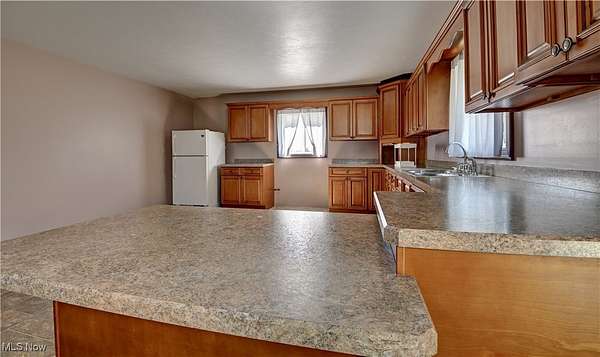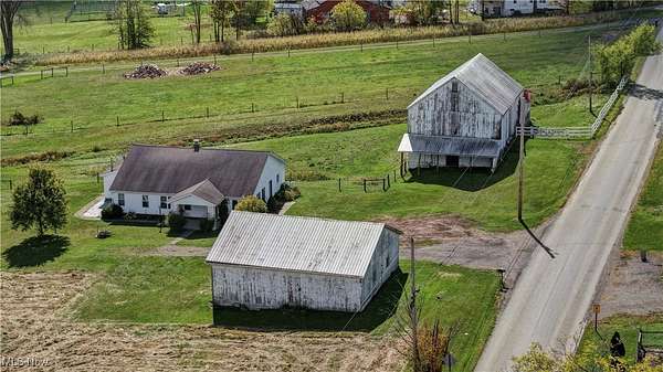 Live Onsite Auction Tuesday November 25th at 5:00 PM!! Located in a prime area between Middlefield and Mespo we are offering this home and outbuildings at auction. The house has 3 bedrooms, a large master bathroom, large kitchen/ dining room with custom cabinetry, eat in bar and walk-in pantry. The main floor also has a living room, sewing/sunroom, multiple closets and back entrance with a laundry room. Included with the property is a bank barn, a two-door garage for extra storage and fenced in pasture along with some wooded acreage. Utilities to the home include shared well, and propane. One floor living with an open floor plan and outbuildings, if you're just starting out, downsizing, or already have a small family don't pass this one by.