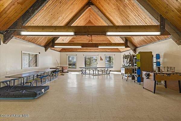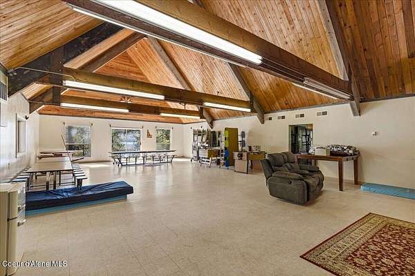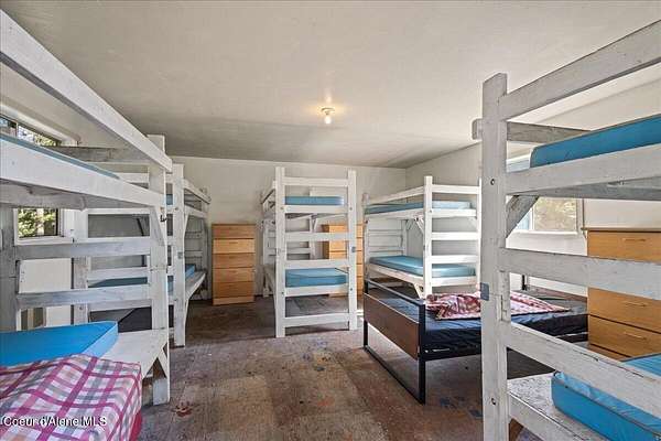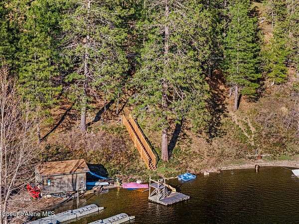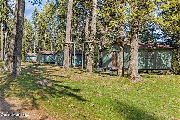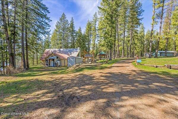 Rare North Idaho opportunity -- 18.48 acre property with 200' of sandy beach, permitted boat dock and campground ready for your vision! The 3-bed/2-bath main residence (1,560 sq ft) captures serene lake views and provides comfortable year round living. Guest accommodations include 8 tent sites with firepits and picnic tables, 6 cabins (including a 1-bed/1-bath with kitchenette), and a his/hers bathhouse. The lodge/event venue features a fully equipped commercial kitchen, large dining hall with lakeviews and fireplace. The 1,500 sq ft pavilion w/lakeview is ideal for weddings/large gatherings. Guests enjoy nature trails, powered stage with tiered seating, playground, climbing wall, and horseshoe pits! Long operated as a beloved family/youth camp, this property is primed to become a wedding/event venue, campground, or private lakeside retreat. Plotted waterfront and secondary lots offer possible development or expansion. Infrastructure is in place -- bring your visio