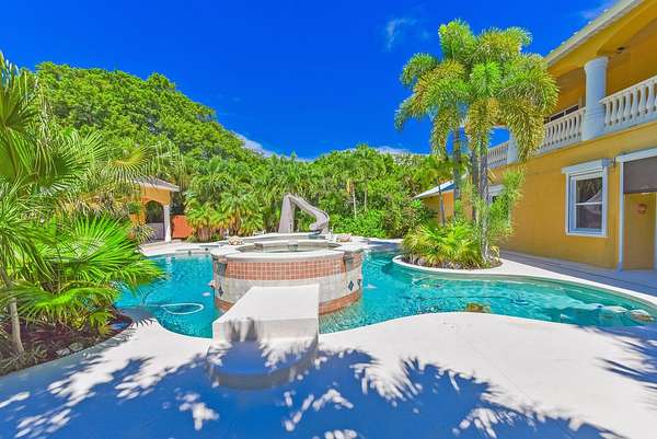 Estate Home with Guest House sitting on a 7.25 Acre parcel of Riverfront land, w/ 460' walk out dock. Calling all Car Collectors ,Very Private Estate Home with attached 2 car garage set back over 250'. Plus 2 Separate Large Garages perfect for Car collection ,3 car detached garage with A/C ,gym & bath,CBS 32X55, plus a new 5 car garage 72' X 32' with apartment , full A/C . High & Dry w/30 ft elevation ''per owner''. Main House 4600 under a/c 6,400 total. 10 ft ceiling Height,3 story, 4 bed, 4 bath, Granite Counters Kitchen & Baths,Double Oven, Media Room, Covered Balconies front and rear, Newer Aluminum Roof, Impact Windows 2nd & 3rd Floors, Electric Hurricane Panels first floor, 60,000 gallon free form resort salt water pool w/Spa , Horses OK