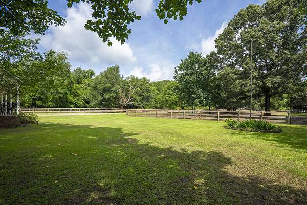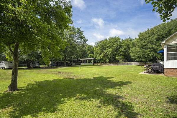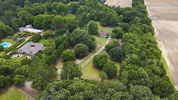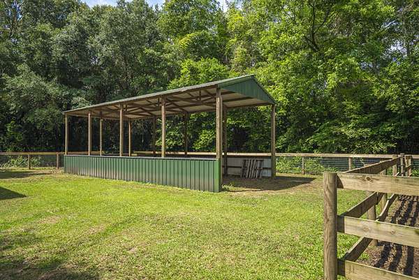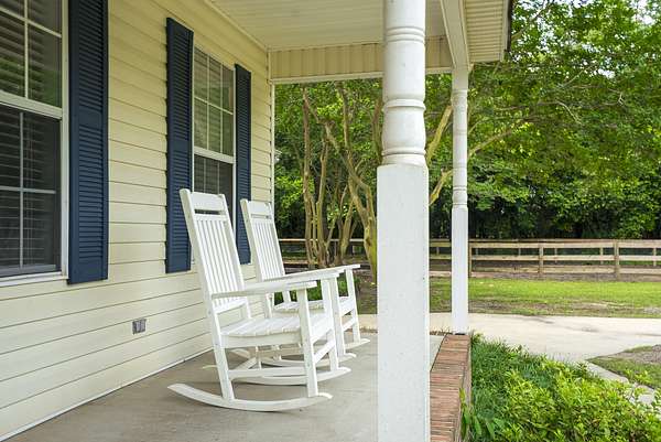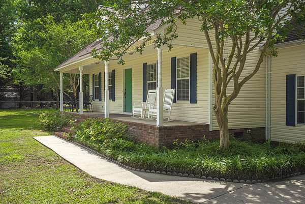 Perfect combination of charm, privacy & location is found at the delightful, horse-ready, 6.37 acre property at 8074 Church Street. Tucked privately on a sandy lane off Old Dibble Road, you will love the easy access to Southside shopping; downtown and equestrian training facilities & venues, including Sporting Days, The Vista, Jumping Branch & Full Gallop Farms, equine clinics, tack stores and a short drive to Stableview. Equestrians will appreciate the 3 fenced paddocks, woodland trails & ample space for a jump field and dressage arena, all set within beautifully landscaped grounds with stunning live oaks that add to the peaceful, low country ambiance. The inviting home welcomes you with its farmhouse style. From the spacious front porch step inside to the delightfully updated, 2072 sq. ft. home with handsome pine floors, newer baths & a wonderful kitchen with butcher block counters, farmhouse sink, stainless appliances, uplit pantry & breakfast area. The generous living room features a ventless gas fireplace and access to an enclosed sunporch overlooking the grassy backyard & riding area. The main floor primary suite features a walk-in closet and generous bath with 2 separate vanities and linen storage. The main floor also features a full bath and laundry room steps to the garage and up to the bonus room, that can flex as a 4th bedroom, office or playroom. A second staircase leads to 2 guest bedrooms, a shared hall bath & access to great walk-in attic storage. The home's layout makes it easy and comfortable to host visiting friends and family with privacy for all! You will love the outdoor space the current owners have created to enjoy living with your dogs, horses & farm animals. The property is fully fenced and enclosed, enabling pets to safely have full run of the farm. The horses have large paddocks for roaming, a grass field for work & a trail system for a quiet ride or sunset walk. You also will find a covered shed for RV/trailer parking, currently used for hay storage, and a second storage shed with covered parking and a screened porch that has served well as an efficient, tack/storage area. The home also has an attached one-car garage with plenty of space for an ATV and boot bench area. This sweet, tranquil farm is surrounded by scenic woodlands - a truly wonderful property and opportunity to enjoy peace, comfort & convenience! Call for your confirmed appointment today!
