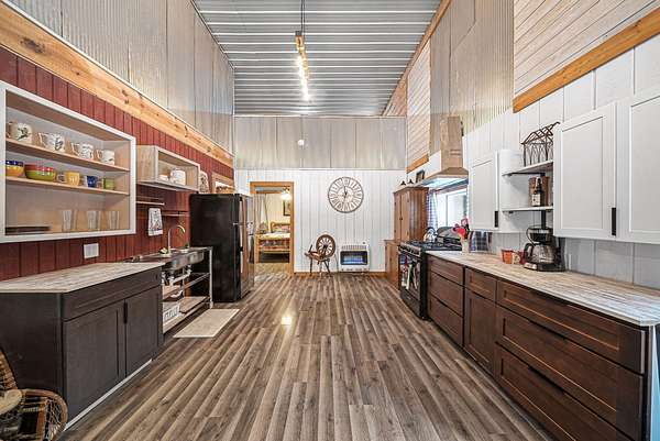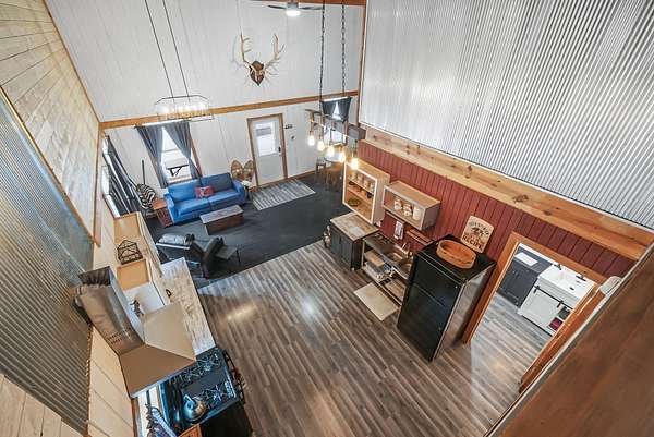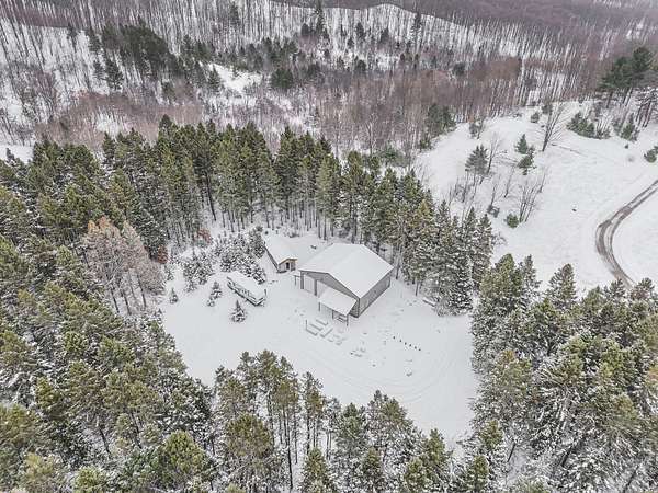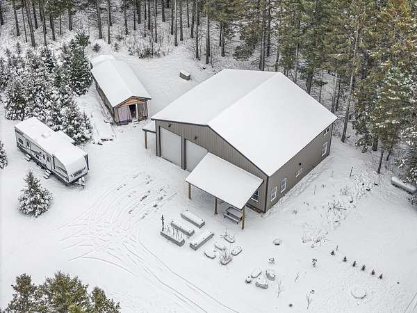 Welcome to your ultimate hunting / fishing / ATV / snowmobiling camp! This barndominium can be a stay-cation haven! It is a year-round home built with outdoor recreation in mind. House your own boat and/or RV trailer (built for a 27' Sea Ray and 35' RV trailer) and STILL have room for your friends to bring theirs! The barndo itself is set up with 2 10'x14' garage doors on one side and a perfect-sized, eclectic home on the other. There is an oversized primary bedroom plus a sleeping, or gaming, or TV loft above it. The seller/builder loved all things unique and blended rustic with industrial features! The outdoor space is set up to be low maintenance with raised beds for gardening - summers are too short to mess with fancy yards! Additional yard space was cleared for guests to bring their own RVs and a primitive building was moved to the property to use as a cabin. This 5+ acre estate sits at the end of a quiet cul-de-sac of similar homes and is only 11 minutes away from the Torch River DNR boat ramp and Torch Lake Public Swim access; 20 minutes from the Leetsville Trailhead and Twin Birch Golf Course; 29 minutes from Bear Lake Trailhead or Grandview Golf Course and 31 minutes from the breathtaking Jordan River Valley Trail. If fishing, snowmobiling, ATV riding, golfing or hiking are your thing? This is your place from where to do it all!