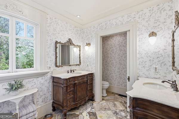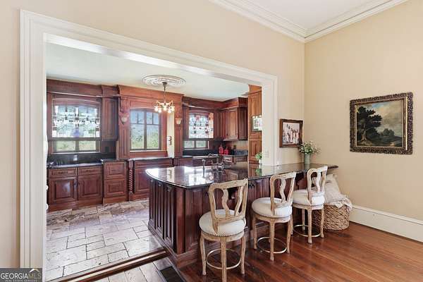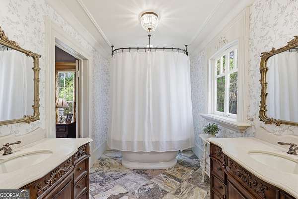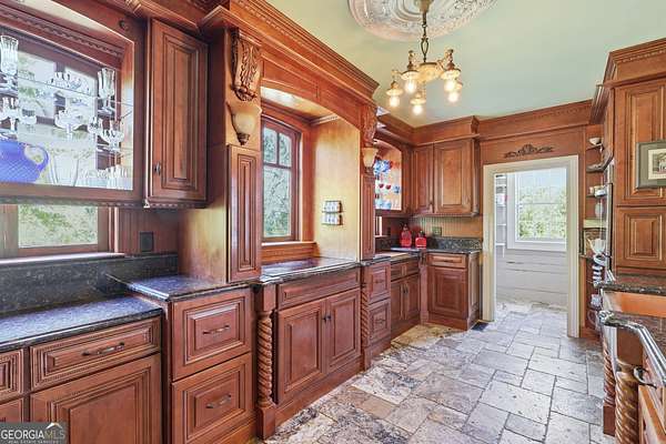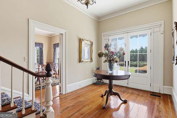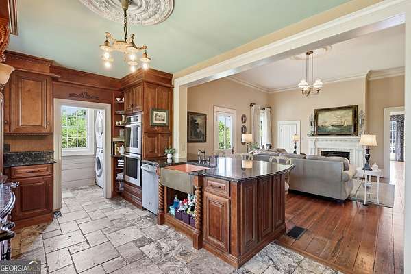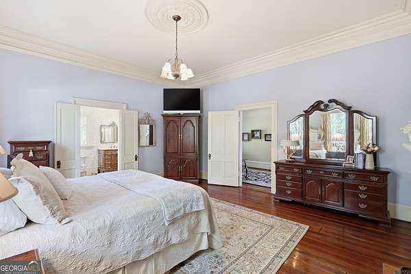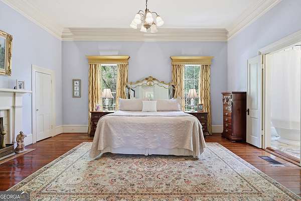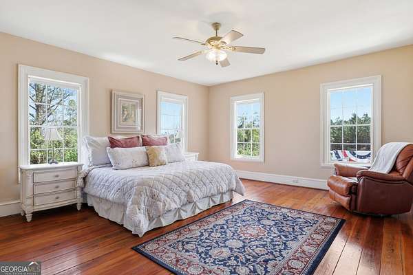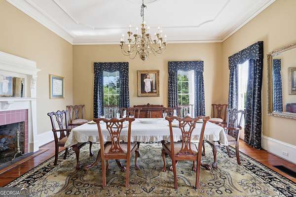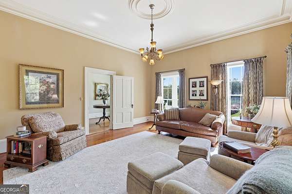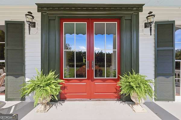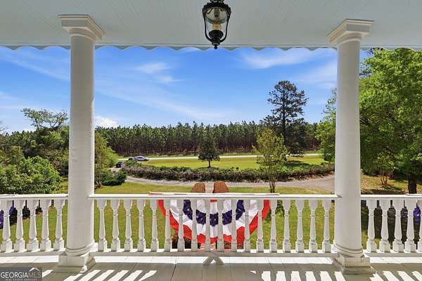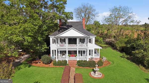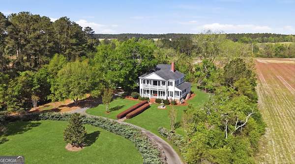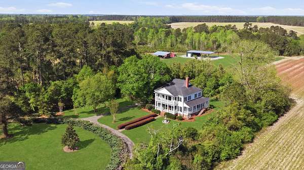 Step into a piece of history with the renowned Blitch Lane House, a circa 1880 architectural treasure nestled in scenic Bulloch County near the Ogeechee River. Set on approximately 2.5 acres, this remarkable property offers timeless Southern charm paired with modern comfort following a full restoration completed in 2009. Inside, the home showcases original heart pine floors, soaring 12-foot ceilings on the main level, and exquisite plaster crown molding. Eight fireplaces throughout the residence add warmth and grandeur, including two gas fireplaces located in the master bedroom and the keeping room, offering both ambiance and convenience. Large windows and doors throughout the home invite in an abundance of natural light while capturing the peaceful beauty of country living. Expansive views of the surrounding landscape create a serene atmosphere, while Georgia's breathtaking sunsets, truly second to none, can be enjoyed from multiple vantage points across the property. The thoughtfully designed kitchen and family areas blend modern living with historic character. Custom wooden cabinetry complements the home's original features, while a copper farmhouse sink serves as a striking focal point. Natural sunlight pours through the windows, framing peaceful views of mature pecan trees and creating a warm, inviting atmosphere throughout these central living spaces. The main-level master suite offers both comfort and privacy, featuring separate his-and-her closets, dual vanities, and a private water closet. Bathrooms throughout the home reflect timeless elegance, showcasing classic clawfoot and pedestal tubs paired with marble, travertine, or onyx flooring. Surrounded by four expansive porches, the home is perfectly designed for enjoying outdoor living in every season, whether relaxing in the shade or entertaining guests. Recent updates provide peace of mind, including a new roof installed in 2018 and a full HVAC system replacement completed in 2019. With five bedrooms and three bathrooms, this exceptional property offers both space and flexibility, ideal for those seeking a historic home with modern livability in a serene setting.