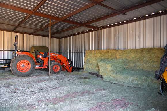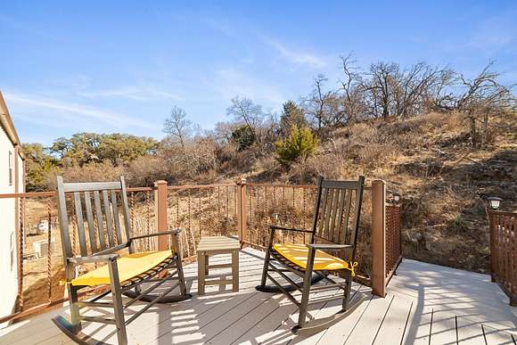 Step outside to enjoy the deck balcony overlooking one of three ponds, perfect for morning coffee or evening sunsets. The property also features an oversized one-car garage, a metal equipment shed, seamless gutters, a 250-gallon propane tank, RV hookups, and a 20' shipping container for storage. Whether entertaining at the picnic table by the pond or relaxing in the one-person sauna in the garage, this home has it all. Extras include an 85" TV, Texas Hill Country Furniture negotiable with an offer, and even a longhorn and Hereford cow to maintain the ag exemption!