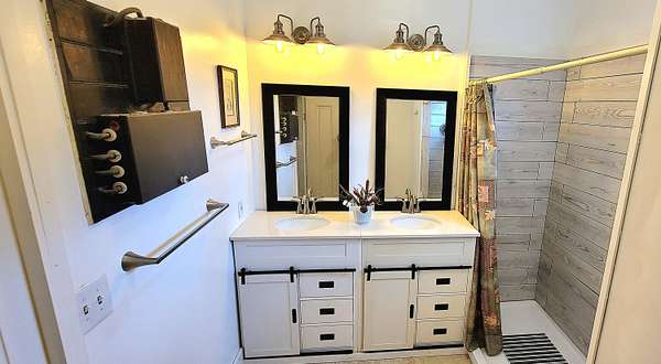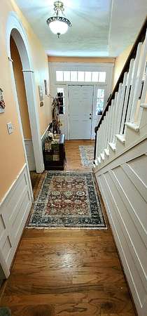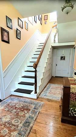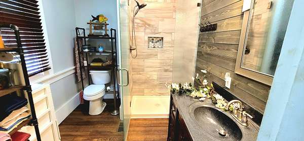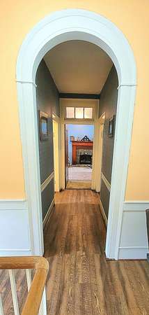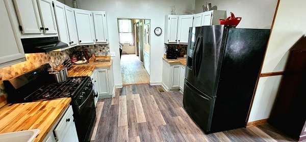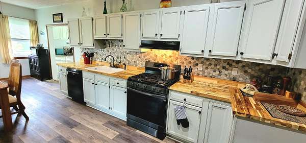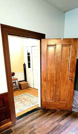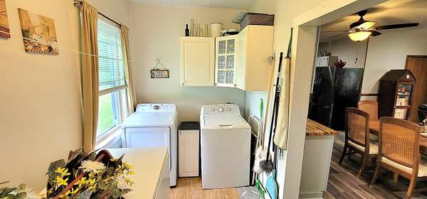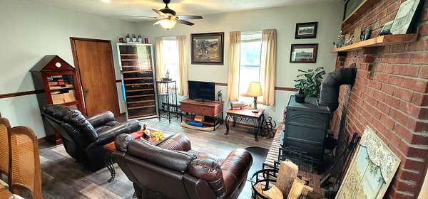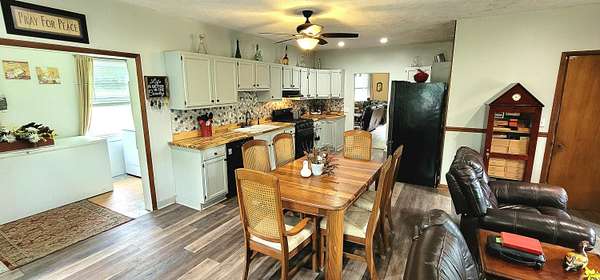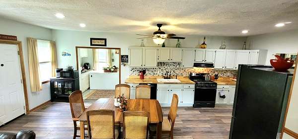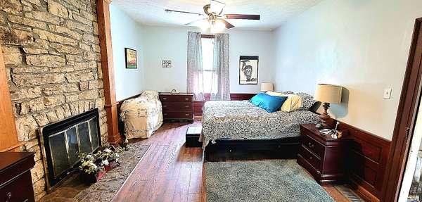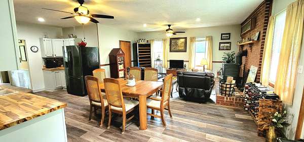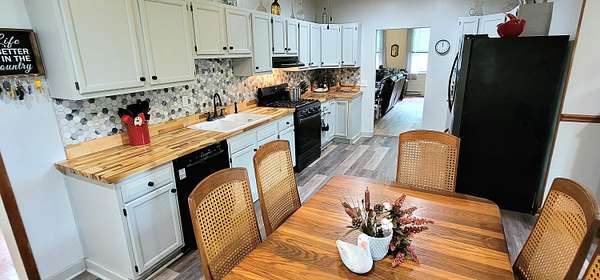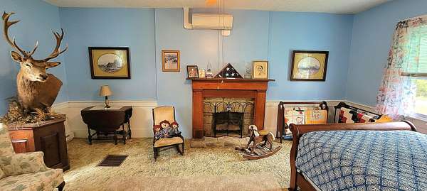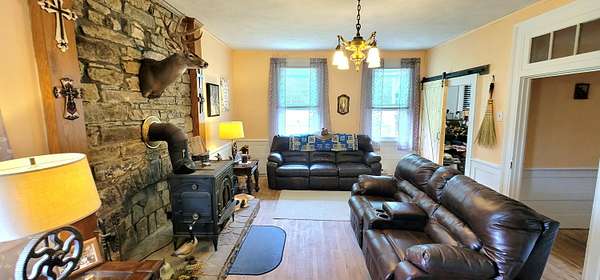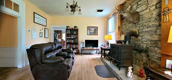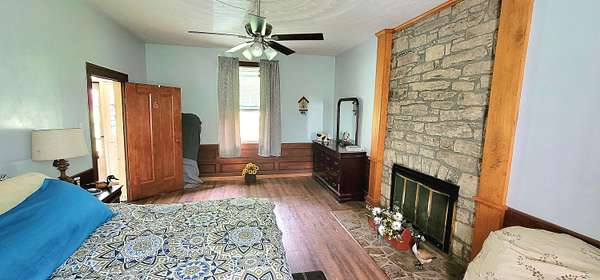 Historic Hallmark Transitional Style home and 56.90 acres. Original features, extraordinary historic architectural detail with tastefully designed modern amenities. Three bedrooms and two baths. 2620 Square feet. The first floor features new custom kitchen with eat-in area and plenty of natural light. Butcher block countertops, coordinating tile backsplash, farmhouse sink, new flooring and high-end appliances including a Samsung gas range, frigidaire side by side refrigerator, Bosch dishwasher, ceiling fans and recessed lighting. Stunning Modern style farmhouse bathroom with barn door entryway, shiplap wall covering, granite countertop, ceramic tile, classic vanity and lighting. Spacious living areas, original paneled doors, and gorgeous hardwood flooring.