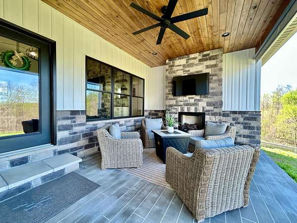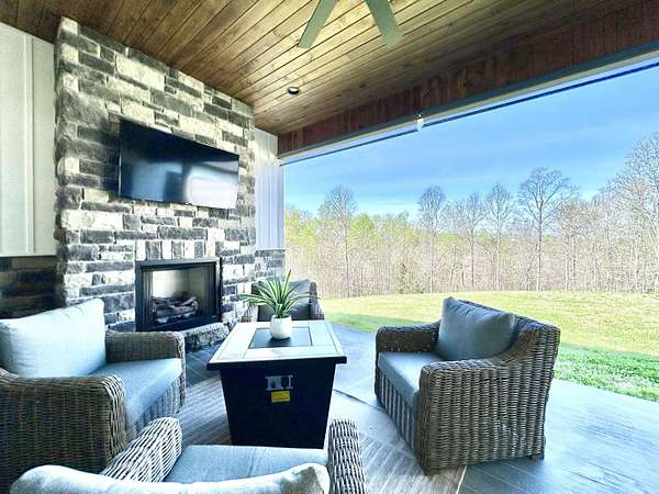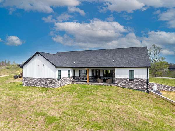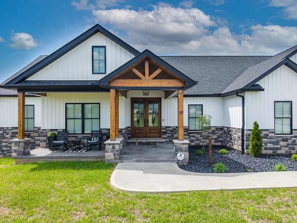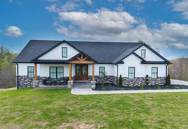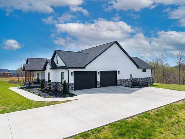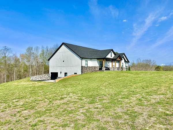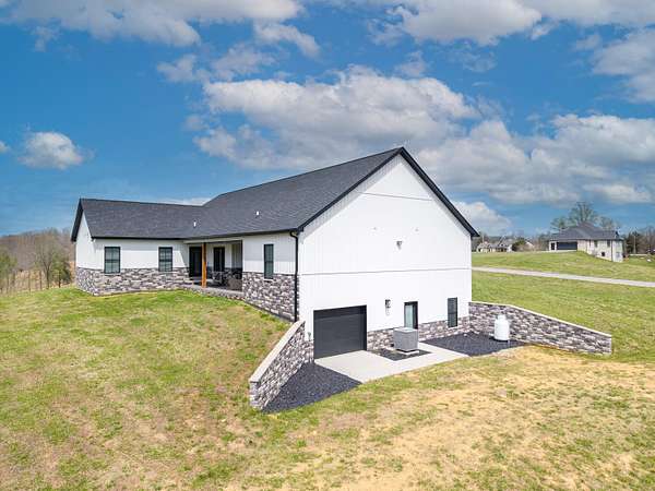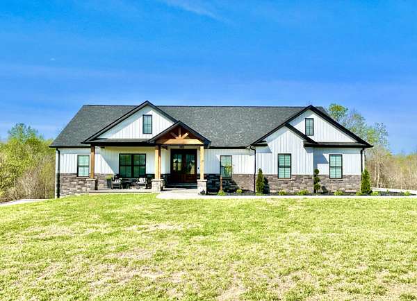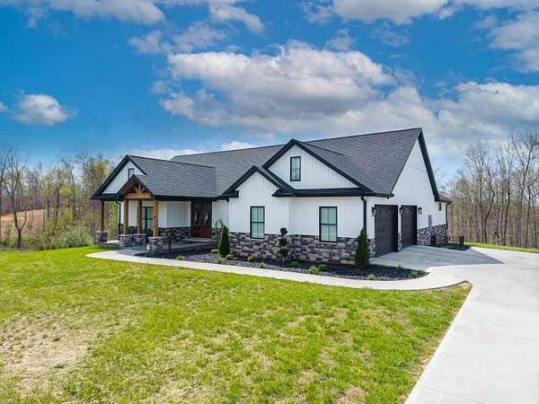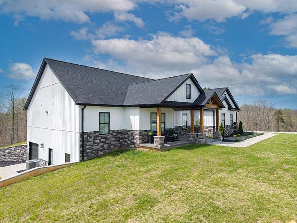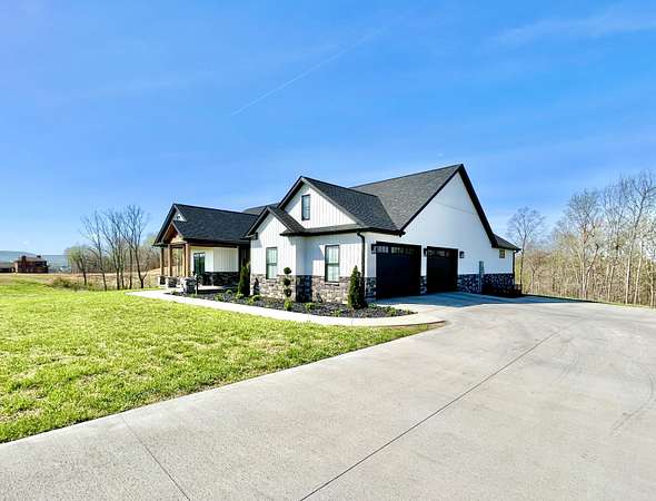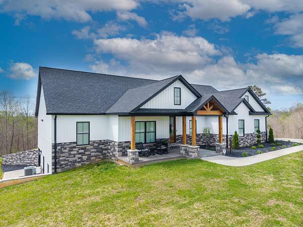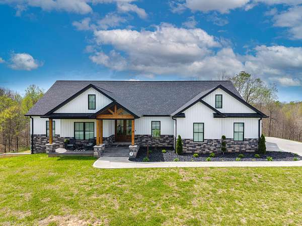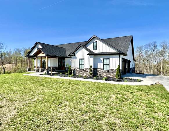 Experience the best of luxury living in this stunning custom-built craftsman style home by Tri County Homes and Rodger Lovins. Boasting 5 spacious bedrooms and 4.5 well-appointed bathrooms, plus a home office, across 3550 sq. ft., this amazing property is filled with upgrades and thoughtful features. Enjoy the gorgeous bright eat-in kitchen complete with quartz counters, stainless appliances, an island bar, and a butler's pantry with modern convenient access from the garage. The open concept floor plan flows seamlessly into a living area accented by beautiful flooring and a striking stone fireplace, perfect for cozy evenings. Retreat to the large master suite featuring a spa-like bath with a tile shower, soaking tub, and an expansive walk-in closet with custom shelving, the finished basement offers a large family room with a fireplace and wet bar ideal for entertaining. Practicality meets convenience with a large utility room, an oversized 2 car garage on the main level, and a utility garage in the basement. Outdoors, relax on the covered rear porch with a fireplace overlooking 4.2 acres of private, wooded land, featuring a creek. Just minutes from Lake Cumberland, this magnificent home offers breathtaking views and the perfect blend of elegance and functionality. Don't miss this exceptional opportunity!