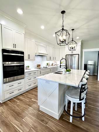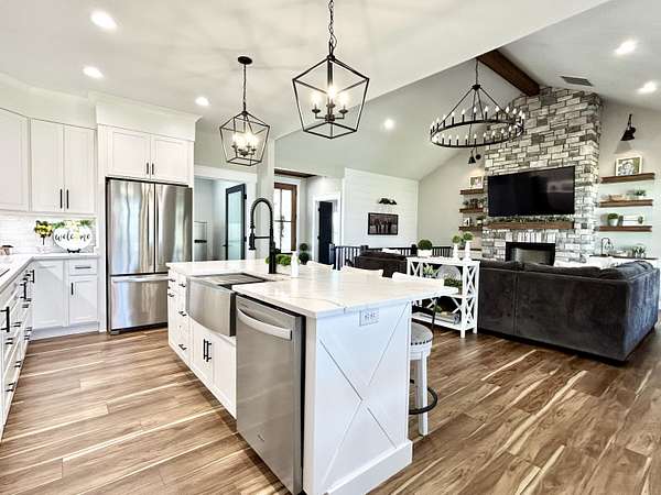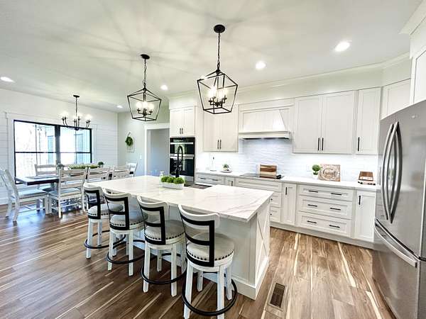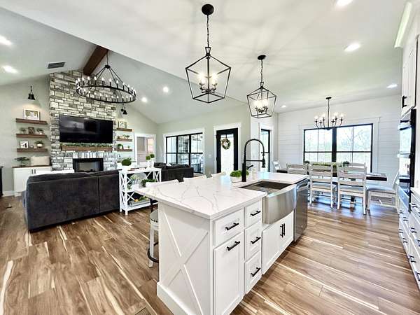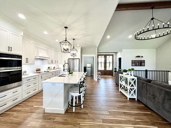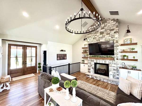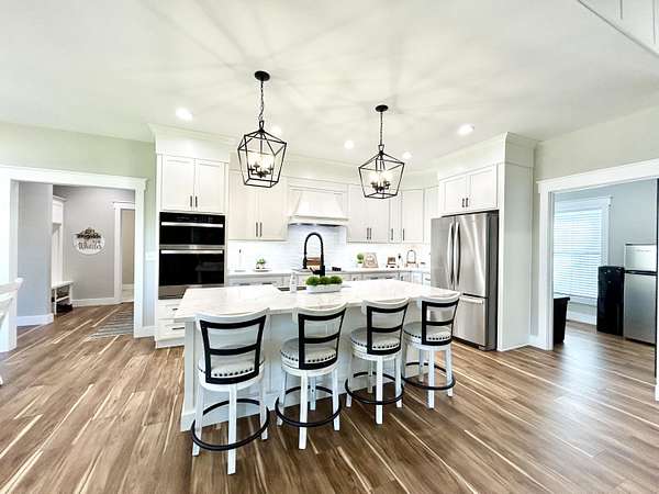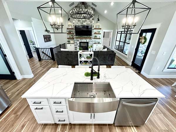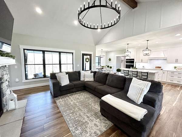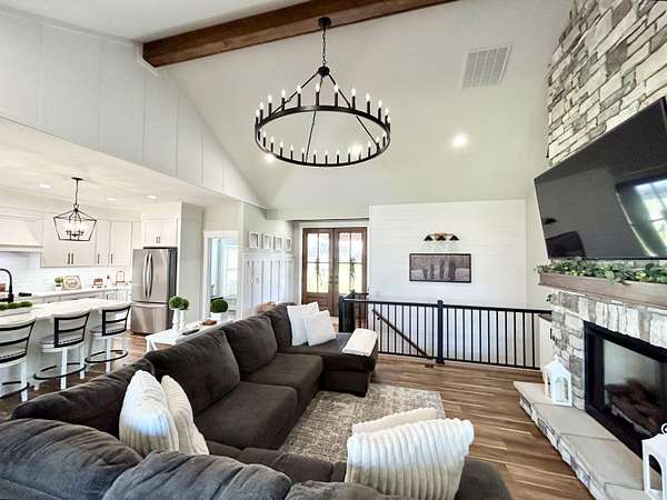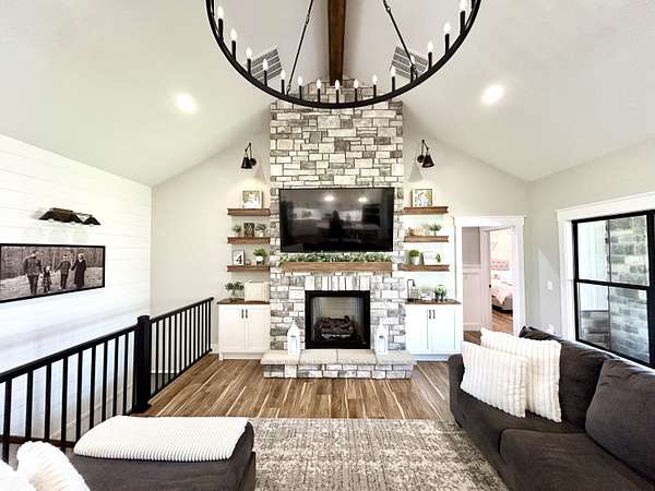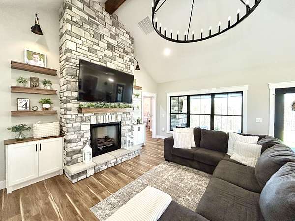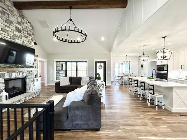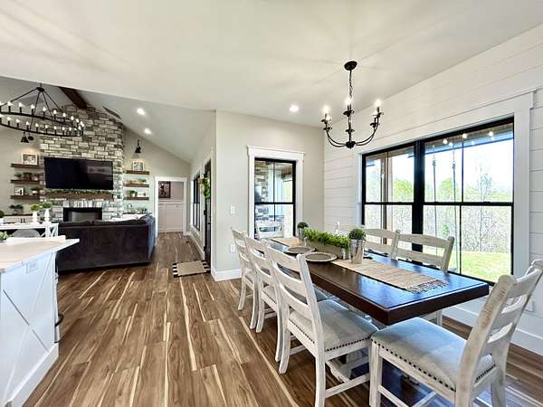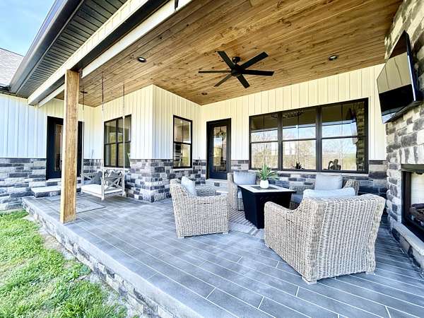 Experience the best of luxury living in this stunning custom-built craftsman style home by Tri County Homes and Rodger Lovins. Boasting 5 spacious bedrooms and 4.5 well-appointed bathrooms, plus a home office, across 3550 sq. ft., this amazing property is filled with upgrades and thoughtful features. Enjoy the gorgeous bright eat-in kitchen complete with quartz counters, stainless appliances, an island bar, and a butler's pantry with modern convenient access from the garage. The open concept floor plan flows seamlessly into a living area accented by beautiful flooring and a striking stone fireplace, perfect for cozy evenings. Retreat to the large master suite featuring a spa-like bath with a tile shower, soaking tub, and an expansive walk-in closet with custom shelving, the finished basement offers a large family room with a fireplace and wet bar ideal for entertaining. Practicality meets convenience with a large utility room, an oversized 2 car garage on the main level, and a utility garage in the basement. Outdoors, relax on the covered rear porch with a fireplace overlooking 4.2 acres of private, wooded land, featuring a creek. Just minutes from Lake Cumberland, this magnificent home offers breathtaking views and the perfect blend of elegance and functionality. Don't miss this exceptional opportunity!