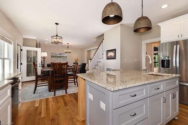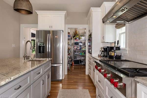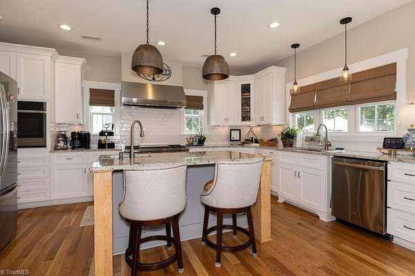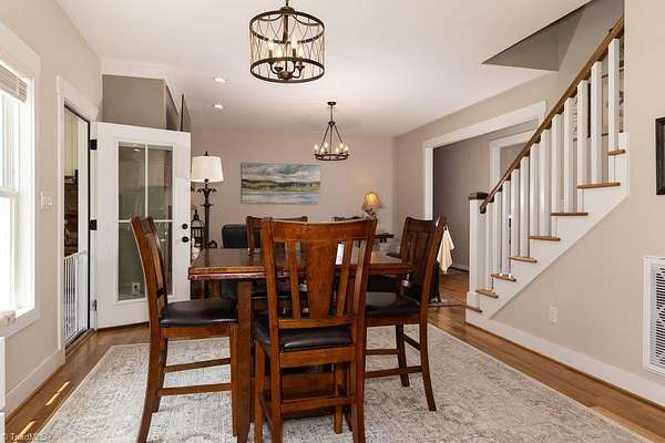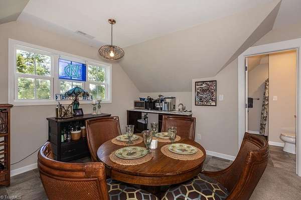 Welcome to this exceptional property on nearly 5 acres of land. This beautifully crafted home showcases gleaming hardwoods, plus a custom-designed kitchen featuring an oversized island, prep sink, wall oven, & gas range. A spacious walk-in pantry w ample storage; Off the kitchen, you will find the butler's pantry connecting to the dining room & functional laundry/mudroom. The Florida room is a cozy retreat, enhanced by a newly added screened-in porch: perfect for enjoying the outdoors in comfort. Upstairs is a generous entertainment area complete with a full bath, wet bar, & flexible bonus room ideal for office, gym, or guest space. Enjoy breathtaking views throughout the property, plus an oversized two-car garage connects to the home by a charming breezeway. A newly added metal building sits beside the garage. Within a short commute to High Rock Lake, the Toyota Facility, Asheboro, Thomasville & more
