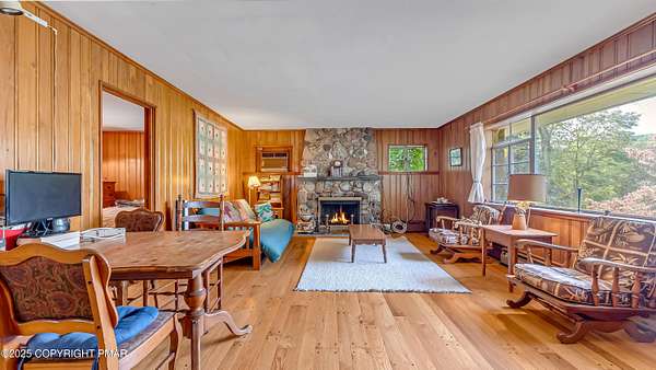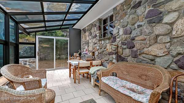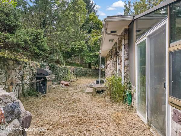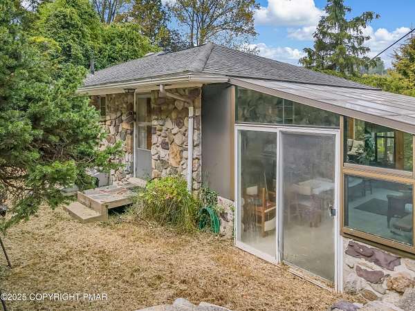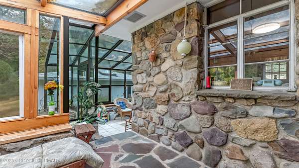 Welcome to 808 Lower Cherry Valley Road, a secluded, special property consisting of over 6+ acres of natural land with a stone house built in the late 1940's and set on a sloping hillside at the base of the Appalachian Trail. The land spans along side of Lower Cherry Valley offering unparalleled views of nature and mountain tops from the large picture window during all seasons. Assembled and painstakingly developed by John Bonner with the help of his son Richard, the property has served four generations of family over its 80 plus year history. Specimen tress and plantings dot the landscape on the property while across the road. The stonework gracing the facade, retaining walls and interior and exterior fireplaces was hand selected for it's beauty and diversity from a local quarry while the cherry wood flooring and walls enhance the interior warmth. Many original fixtures remain throughout the house particularly in the kitchens and upper level bath. On the main level, the house has one bedroom, a large eat in kitchen, full bath and combination living room and dining area with large fireplace. On the lower level, there is a full bath, kitchenette, two bedroom areas, a large great room and storage. There are multiple decks, enclosed patios and an additional family room and bedroom over the two car garage. This is a must see property ready to launch a new lifetime of memories for its next owner. Property is offered ''as-is''.