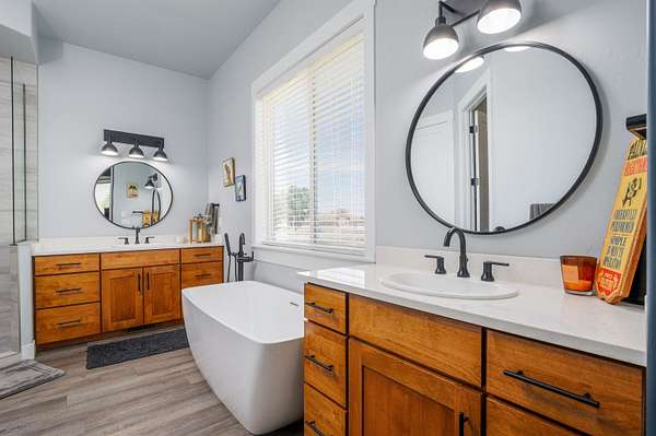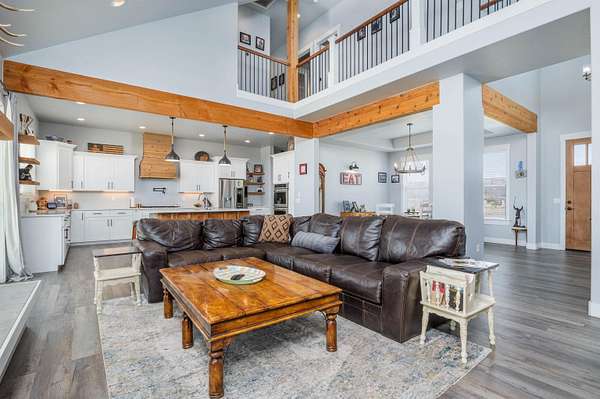 Welcome to 808 Mease Road-where function meets beauty on a hard-to-find small acreage property in North Grand Junction. This thoughtfully designed two-story home sits on just over 2 acres and offers room to spread out while still enjoying modern comforts and conveniences. The custom-built home features a desirable main-level primary suite with a spa-like bath and large walk-in closet, plus three additional bedrooms, an office, and a versatile bonus room upstairs-all perfectly suited for today's lifestyle. You'll love the modern farmhouse style, complete with exposed wood beams, an inviting gas fireplace, and an open-concept kitchen outfitted with a large island, gas range, double ovens, and a walk-in pantry with coffee bar. Practical upgrades include laundry areas on both levels, an attached 3-car garage, and newly installed solar panels for energy efficiency. Step outside and you'll find even more to love: a 40x64 heated shop with 220V, 50 amp RV hookup, concrete wired for a car lift and built on 8-inch slab-ideal for serious hobbyists, RV owners. There's plenty of space for toys, tools, and work equipment, and the lot is fully equipped with an installed sprinkler system and ample RV parking. A rare offering in a sought-after location-don't miss your chance to enjoy the flexibility of acreage living with the convenience of town just minutes away.