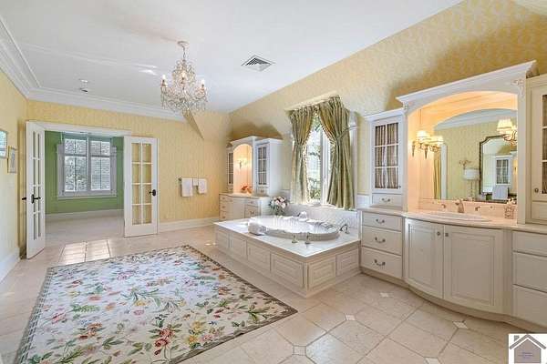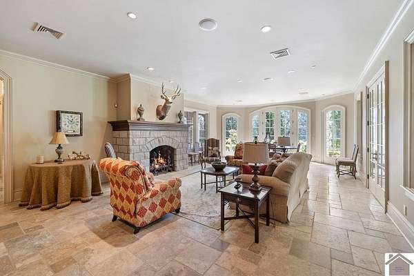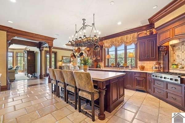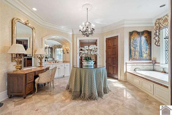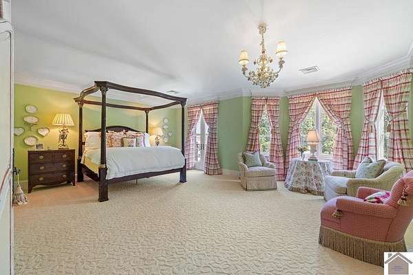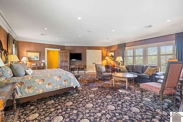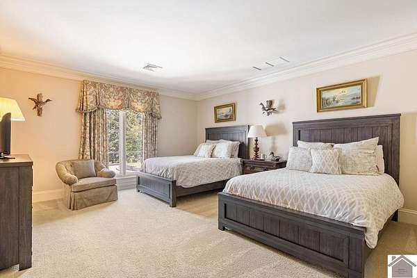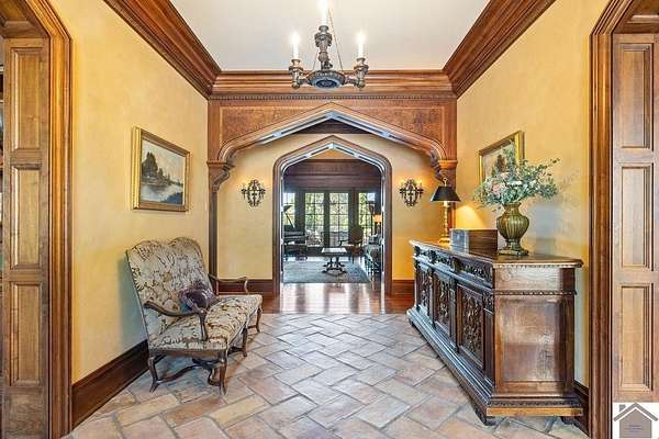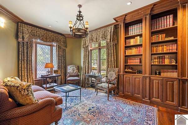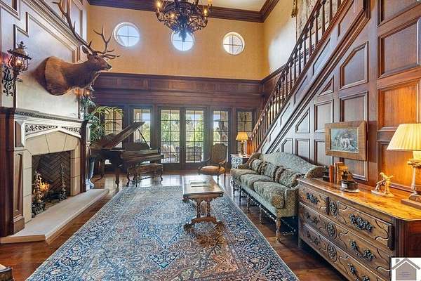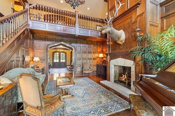 Nestled on more than 35 acres, this extraordinary English-style estate offers timeless elegance and luxury on a grand scale. With over 18,000 sq. ft. of living space, the residence showcases classic architectural details, soaring ceilings, and expansive entertaining areas.The main home has seven spacious bedrooms including a luxury primary suite with custom closet, and private sitting room. The home's finishes reflect old-world craftsmanship blended with comfort. Formal living and dining rooms are complemented by inviting family spaces, a gourmet kitchen, and a library, all framed by sweeping views of the grounds. The property includes a beautifully designed pool house, perfect for summer entertaining, and a fully equipped workshop for hobbyists or collectors. Expansive lawns, mature landscaping, and wooded acreage create a serene setting, offering both privacy and natural beauty.
