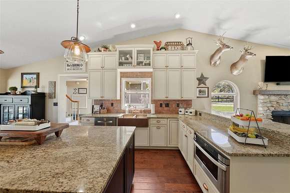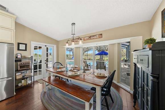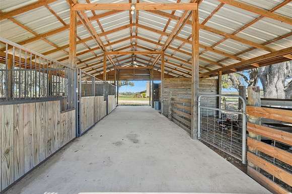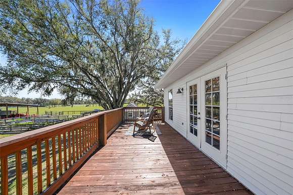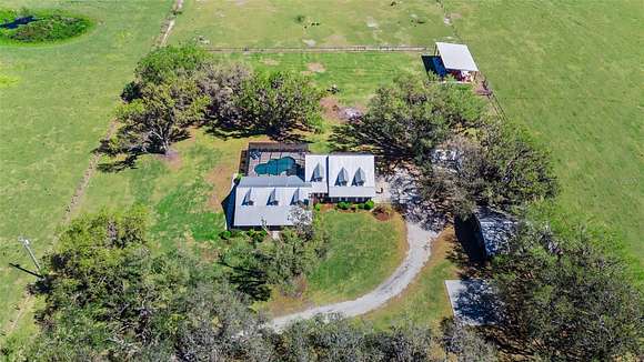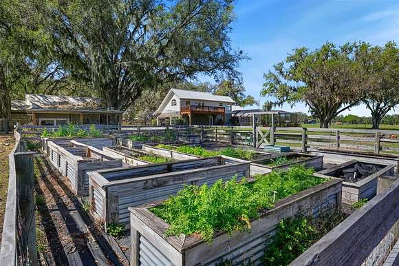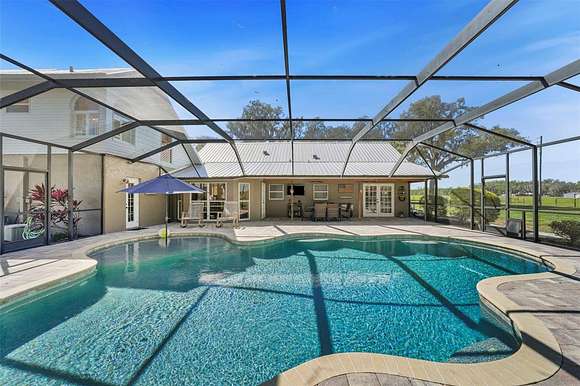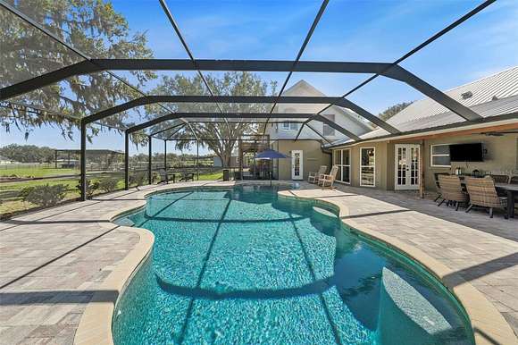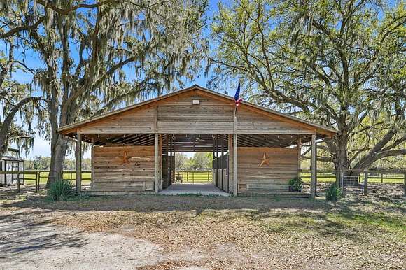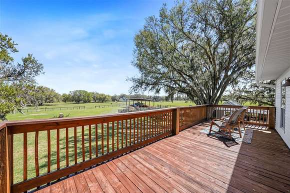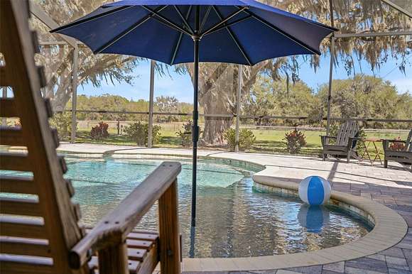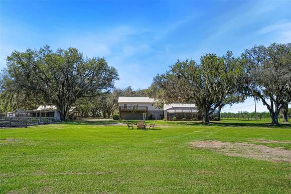 Lovingly referred to as "80 Oaks Ranch", this 10-acre HOMESTEAD DREAM is where modern comfort meets country charm! Imagine waking up to the gentle sounds of nature, gathering fresh eggs from your own chickens, and harvesting sun-ripened vegetables from a thriving garden. As the day winds down, unwind by the SPARKLING SCREENED-IN POOL, where breathtaking sunsets paint the sky, and the stars shine brilliantly overhead. With DIRECT ACCESS TO 9 MILES OF SCENIC HORSE TRAILS in the Alafia Nature Preserve, adventure and tranquility are always within reach. Whether you dream of EQUESTRIAN LIVING, SUSTAINABLE FARMING, OR A PEACEFUL RETREAT, this extraordinary property offers a lifestyle like no other. Nestled on HIGH-AND-DRY, FLOOD-FREE LAND, this beautifully maintained home is surrounded by majestic grandfather oaks, offering the perfect blend of rustic charm and modern upgrades. Thoughtfully updated over the years, this home features TWO PRIMARY SUITES, multiple desk nooks, two mudrooms, large laundry room and an upstairs bonus room, making it ideal for a busy family or multi-generational living. As you approach, a CHARMING ROCKING-CHAIR FRONT PORCH welcomes you. Step inside to soaring ceilings, stunning wood floors, and a cozy WOOD-BURNING FIREPLACE, creating a warm and inviting atmosphere. The DOWNSTAIRS PRIMARY SUITE features French doors leading to the back porch and pool, while the en-suite bath has been completely renovated with a STANDALONE SOAKING TUB, SEPARATE SHOWER, AND DOUBLE VANITIES. Upstairs, a spacious loft serves as the perfect playroom, movie room, or family gathering space. The UPSTAIRS PRIMARY SUITE, located on the opposite side of the home for privacy, is a true oasis. Double doors open to a private WOODEN DECK, offering expansive views of the property, while the spa-like bathroom boasts QUARTZ COUNTERTOPS, A DOUBLE VANITY, AMPLE STORAGE, and a beautiful shower with frameless doors. The FULLY REMODELED CHEF'S KITCHEN is a showstopper, featuring GRANITE COUNTERTOPS, A HAMMERED COPPER SINK, COPPER FIXTURES, A POT FILLER, AND A STUNNING BRICK BACKSPLASH. The CUSTOM-DESIGNED CABINETRY, with double-stacked upper cupboards and two-tone finishes, brings this luxurious farmhouse kitchen to life. Step outside to enjoy the ultimate HOMESTEADING AND RANCH LIFESTYLE. The NEWLY added 30X49 POLE BARN is perfect for farm equipment and tall enough for RV's or Boats. Built with 10X10 timbers and steel trusses, it was built to last. The 5-STALL BARN EQUIPPED WITH A WASH RACK AND TACK ROOM, provides ample space for horses and livestock. Separate fenced pastures allow animals to roam freely, while the BASKETBALL COURT THAT DOUBLES AS A PICKLEBALL COURT offers endless recreation. The RAISED GARDEN BEDS WITH AN IRRIGATION SYSTEM make farm-to-table living effortless, and the finished shed with its own front porch is perfect as a workspace, storage area, or charming she-shed. Zoned for AGRICULTURE, this incredible property welcomes horses, cows, goats, chickens, and more. Whether you're dreaming of self-sufficiency, equestrian pursuits, or a quiet country escape, 80 OAKS RANCH is ready to make your vision a reality. SCHEDULE YOUR PRIVATE SHOWING TODAY AND EXPERIENCE THE MAGIC OF THIS ONE-OF-A-KIND HOMESTEAD!