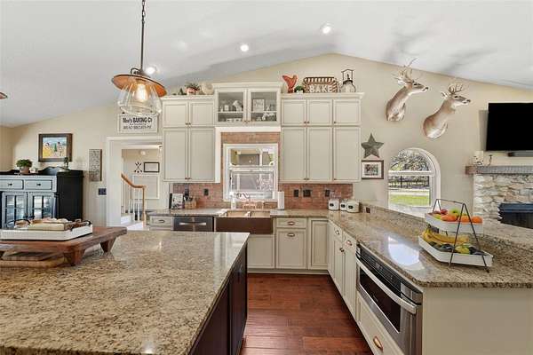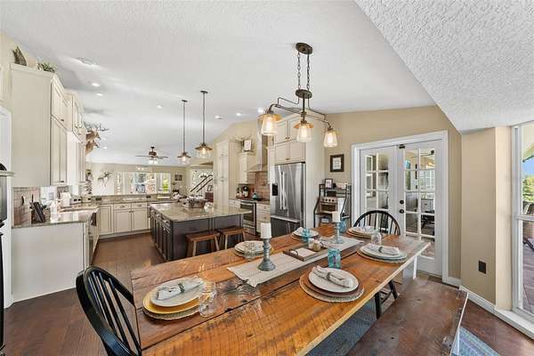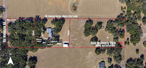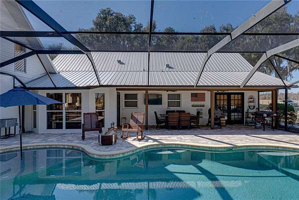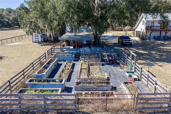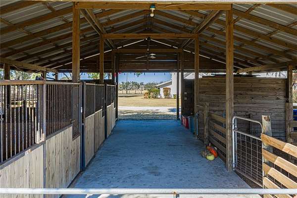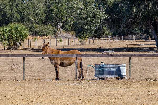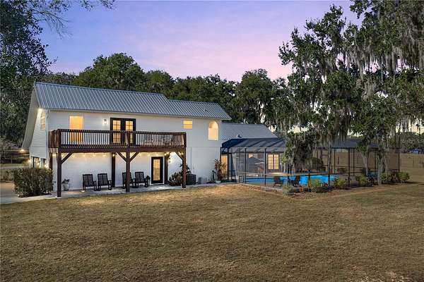 10-acre HOMESTEAD DREAM where modern comfort meets country charm! Imagine waking up to the gentle sounds of nature, gathering fresh eggs from your own chickens, and harvesting sun-ripened vegetables from a thriving garden. As the day winds down, unwind by the SPARKLING SCREENED-IN POOL, where breathtaking sunsets paint the sky, and the stars shine brilliantly overhead. With DIRECT ACCESS TO 9 MILES OF SCENIC HORSE TRAILS in the Alafia Nature Preserve, adventure and tranquility are always within reach. Whether you dream of EQUESTRIAN LIVING, SUSTAINABLE FARMING, OR A PEACEFUL RETREAT, this extraordinary property offers a lifestyle like no other. Nestled on HIGH-AND-DRY, FLOOD-FREE LAND, this beautifully maintained home is surrounded by majestic grandfather oaks, offering the perfect blend of rustic charm and modern upgrades. Thoughtfully updated over the years, this home features TWO PRIMARY SUITES, multiple desk nooks, two mudrooms, large laundry room and an upstairs bonus room, making it ideal for a busy family or multi-generational living. As you approach, a CHARMING ROCKING-CHAIR FRONT PORCH welcomes you. Step inside to soaring ceilings, stunning wood floors, and a cozy WOOD-BURNING FIREPLACE, creating a warm and inviting atmosphere. The DOWNSTAIRS PRIMARY SUITE features French doors leading to the back porch and pool, while the en-suite bath has been completely renovated with a STANDALONE SOAKING TUB, SEPARATE SHOWER, AND DOUBLE VANITIES. Upstairs, a spacious loft serves as the perfect playroom, movie room, or family gathering space. The UPSTAIRS PRIMARY SUITE, located on the opposite side of the home for privacy, is a true oasis. Double doors open to a private WOODEN DECK, offering expansive views of the property, while the spa-like bathroom boasts QUARTZ COUNTERTOPS, A DOUBLE VANITY, AMPLE STORAGE, and a beautiful shower with frameless doors. The FULLY REMODELED CHEF'S KITCHEN is a showstopper, featuring GRANITE COUNTERTOPS, A HAMMERED COPPER SINK, COPPER FIXTURES, A POT FILLER, AND A STUNNING BRICK BACKSPLASH. The CUSTOM-DESIGNED CABINETRY, with double-stacked upper cupboards and two-tone finishes, brings this luxurious farmhouse kitchen to life. Whole house has a fresh coat of outdoor paint! Step outside to enjoy the ultimate HOMESTEADING AND RANCH LIFESTYLE. The NEWLY added 30X49 POLE BARN is perfect for farm equipment and tall enough for RV's or Boats. Built with 10X10 timbers and steel trusses, it was built to last. The 5-STALL BARN EQUIPPED WITH A WASH RACK AND TACK ROOM, provides ample space for horses and livestock. Separate fenced pastures allow animals to roam freely, while the BASKETBALL COURT THAT DOUBLES AS A PICKLEBALL COURT offers endless recreation. The RAISED GARDEN BEDS WITH AN IRRIGATION SYSTEM make farm-to-table living effortless, and the finished shed with its own front porch is perfect as a workspace, storage area, or charming she-shed. Zoned for AGRICULTURE, this incredible property welcomes horses, cows, goats, chickens, and more. Whether you're dreaming of self-sufficiency, equestrian pursuits, or a quiet country escape, be ready to make your vision a reality. SCHEDULE YOUR PRIVATE SHOWING TODAY AND EXPERIENCE THE MAGIC OF THIS ONE-OF-A-KIND HOMESTEAD!