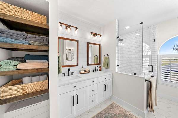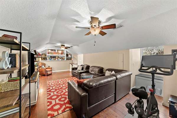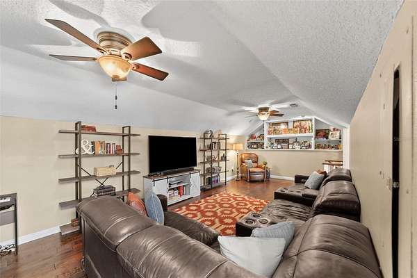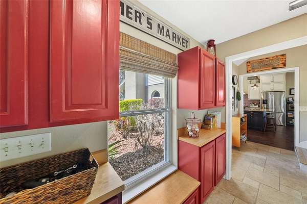 - Built-In Features, Ceiling Fans(s), Eat-In Kitchen, High Ceilings, Kitchen/Family Room Combo, Primary Bedroom Main Floor, Primary Bedroom Upstairs, Solid Wood Cabinets, Split Bedroom, Stone Counters, Thermostat, Vaulted Ceiling(s), Walk-In Closet(s), Window Treatments