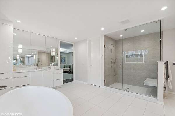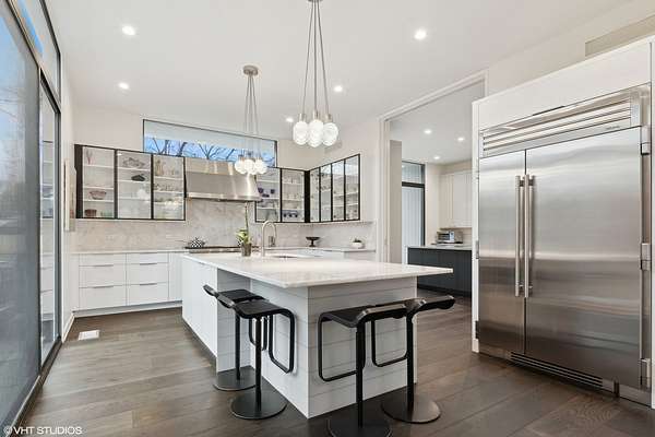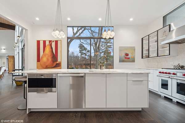 Stunning 6-bed, 6.2-bath Grunsfeld home with main level primary suite on 1.77 acres in a private location in Glencoe. This completely remodeled, over 9,000 sqft upscale home features incredible living space with high ceilings, walls of windows, and an abundance of light. All new double kitchens create separate spaces that cater to all cooking needs. High-end appliances include a True fridge/freezer, Sub-Zero double fridge drawers, Wolf 8-burner double oven, Blue Stone wall oven, 2 Miele dishwashers, as well as luxurious iceberg quartzite counters and backsplash. Two-story sunny great room with wood ceiling, skylights, and beams overlooks the bluestone patio and beautiful property. A separate office with a fireplace and sliding doors offers access to the outdoors. Well-appointed primary suite with lighted cove moldings, two generous walk-in closets, and a separate laundry room. New primary bathroom with soaking tub, large shower, and double vanity. The second level features 5 bedrooms with walk-in closets, one used as an upper level office, and an exercise room. Additional family room, loft space, craft room, and 5 bathrooms on the upper level. The lower level offers a brand new custom wine cellar and generous storage space. Additional features include a spacious mudroom/laundry room with dog shower, new elevator, a heated 2-car garage with extra storage, and a new wood privacy fence. See additional information for more updates and upgrades. Incredible opportunity for private, luxurious living in a rarely available location.