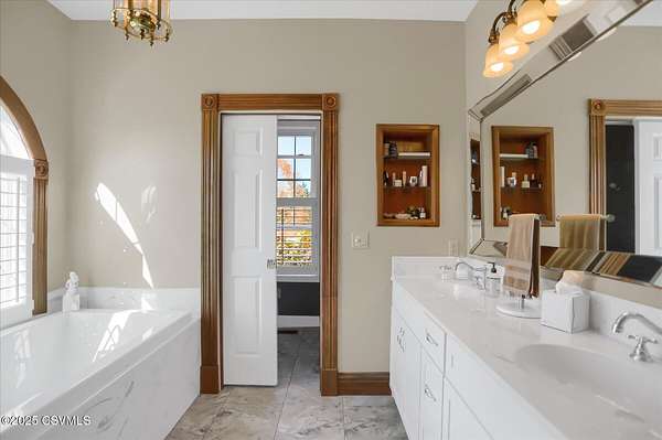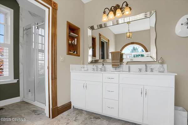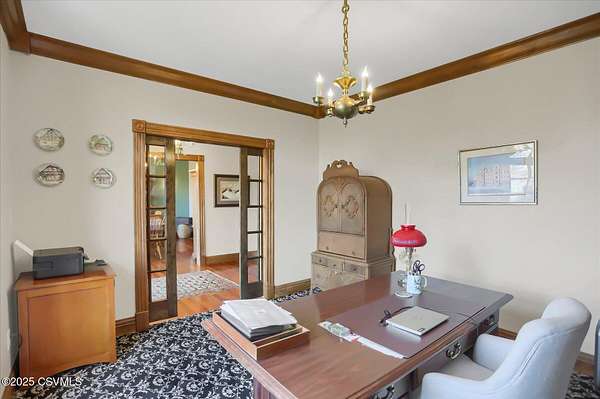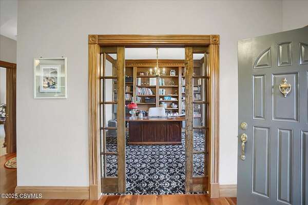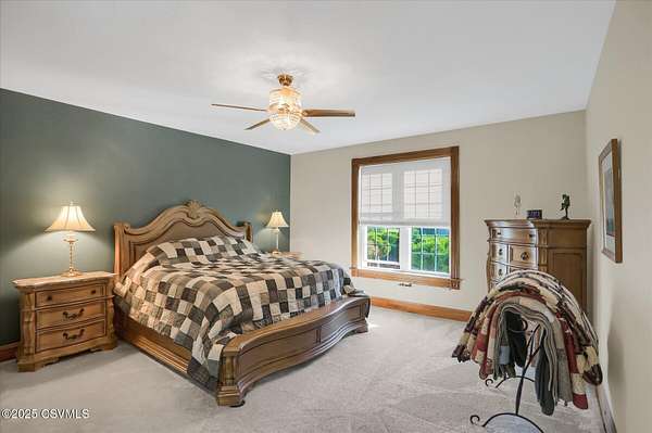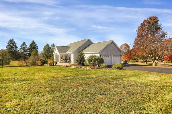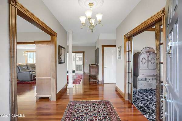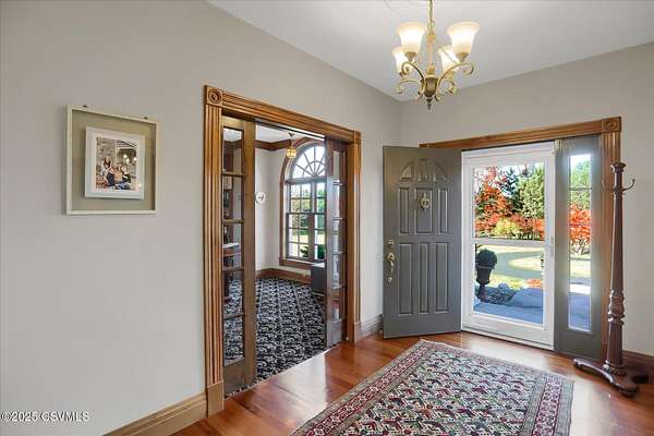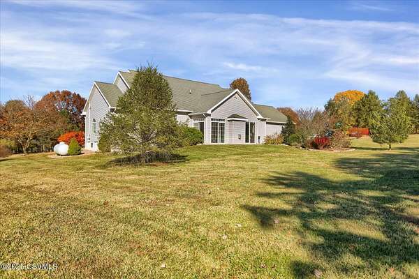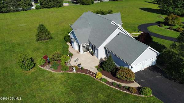 A long, paved driveway welcomes you to this exquisite, custom-built home in Upper August Township, situated on 4.4 level acres. The first floor features high ceilings, beautiful cherry hardwood floors and kitchen cabinets, black walnut moldings and quartz countertops. The primary suite is expansive with a walk-in closet, soaker tub, private shower and custom double vanity. The inviting sunroom has a gas fireplace and an abundance of natural light - the perfect spot to enjoy birdwatching and unwind. A private study trimmed in black walnut with built-in bookcases provides a quiet place to read or work from home. The bright and spacious laundry room and half-bath complete the first level. Upstairs are 2 spacious bedrooms and a full bath with new carpet throughout and fresh paint