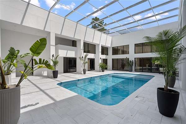 Behind the guarded gates of the prestigious Sweetwater Club, on over three acres of manicured grounds, lies an extraordinary fully remodeled 14,000+ square foot estate that redefines grandeur and sophistication. A sweeping double-entry driveway framed by mature, curated landscaping guides you to the stately facade, where timeless architecture meets meticulous design, including a new roof (2022) and freshly refined exterior finishes. At the heart of the home, the grand family room captivates with its soaring ceilings, bespoke millwork, and custom illuminated built-ins with LED underlighting. Expansive windows invite natural light while framing serene views of the pool courtyard, ensuring every moment feels cinematic. The chef's kitchen is a true culinary masterpiece. Exquisite quartz countertops and professional-grade stainless appliances stand ready for both intimate family dinners and grand-scale entertaining. A generous island doubles as a culinary stage and social hub, while the adjoining formal dining room, finished with refined detailing and natural light, offers the perfect backdrop for soirees and celebratory dinners. The primary is truly a room of palatial scale; the suite is wrapped in floor-to-ceiling glass overlooking the shimmering courtyard pool. The spa-inspired bath rivals the finest resorts, featuring an expansive walk-in shower with multiple rain showerheads, a freestanding soaking tub, and a spacious dressing walk-in closet. Each secondary bedroom has been designed with equal attention to luxury, spacious in proportion, each with its own walk-in closet. This estate was created for living large and entertaining even larger. The bar and lounge area, complete with its own island, is perfect for entertaining. Outdoor living unfolds as a true resort with a screened courtyard pool, expansive travertine decking for grand entertaining, and a fully appointed summer kitchen pavilion complete with a pizza oven, built-in seating, and shaded dining space that create an atmosphere of Mediterranean resort living. Steps away, your newly resurfaced private tennis courts extend the estate's leisure amenities, providing the perfect stage for recreation. For the automobile enthusiast, the five-car garage and sprawling motor court make a dramatic statement seamlessly integrated into the estate's unrivaled design. Fully gated and meticulously upgraded, this estate is not just a home but an irreplaceable lifestyle, offering unparalleled privacy, scale, and elegance in one of Central Florida's most distinguished communities. Beyond the estate, life in Sweetwater Club offers unparalleled exclusivity, you have access to tennis/pickleball courts, a basketball court, and your in a secure, guard-gated setting. Opportunities like this rarely come along, don't miss the chance to make this estate yours.