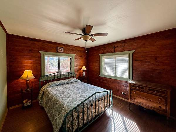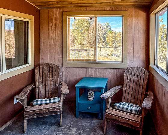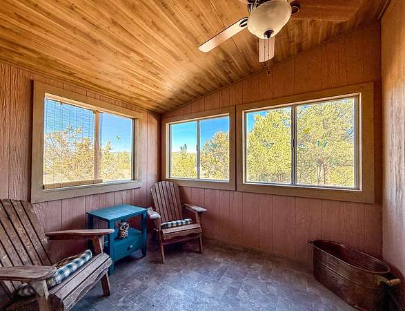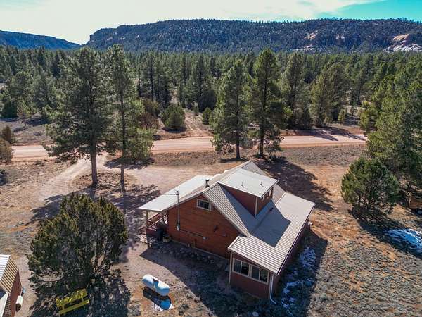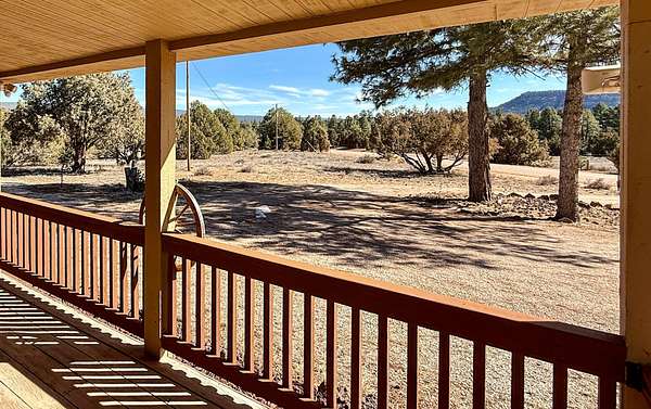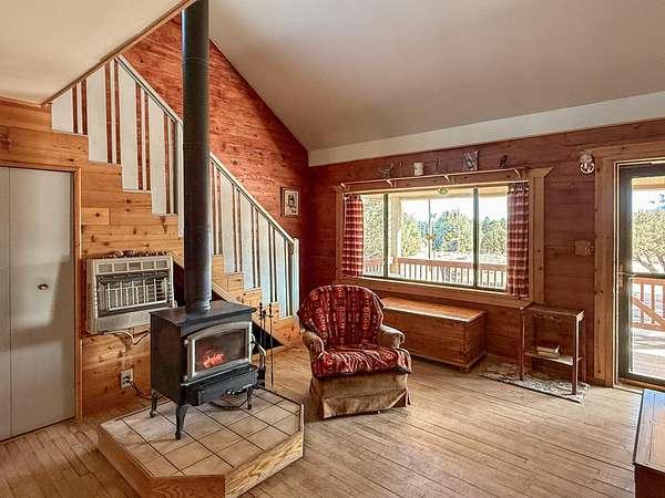 Make your escape to this well-tended high desert cabin full of rustic charm. Take in the sweeping views from the front porch, then enter to a large open living area and kitchen, with a dining area and sunroom beyond. Two bedrooms downstairs, upstairs a full bath and attic suite that would make a great studio or large 3rd bedroom. Wake to sweeping views of the colorful cliffs and curl up by the wood stove on crisp mountain nights. Set among the pines, this mountain home captures the quiet magic of New Mexico high desert living. Kayak on the lake, hike one of the many nearby trails, or just sit and soak up the clean air. HOA dues are only $230 per year, roads are maintained year-round. Peaceful and helpful community, with volunteer fire/EMT just minutes away.
