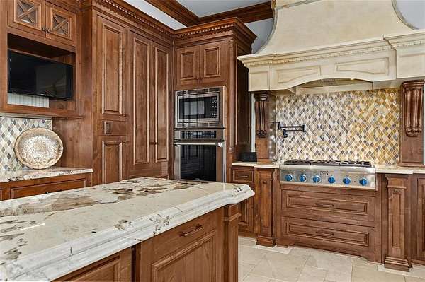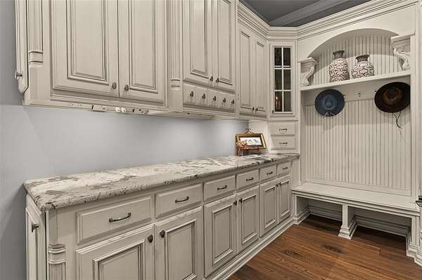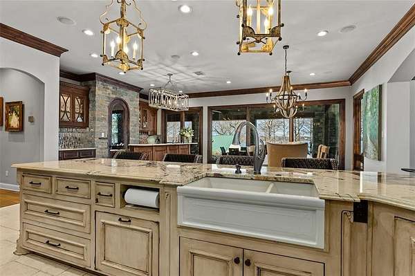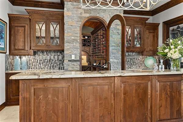 - Built-In Features, Built-In Wine Cooler, Cable TV Available, Cathedral Ceiling(s), Chandelier, Decorative Lighting, Double Vanity, Dry Bar, Eat-In Kitchen, Flat Screen Wiring, Granite Counters, High Speed Internet Available, In-Law Suite Floorplan, Kitchen Island, Natural Woodwork, Open Floorplan, Pantry, Second Primary Bedroom, Smart Home System, Vaulted Ceiling(s), Walk-In Closet(s), Wet Bar, Wired For Data
