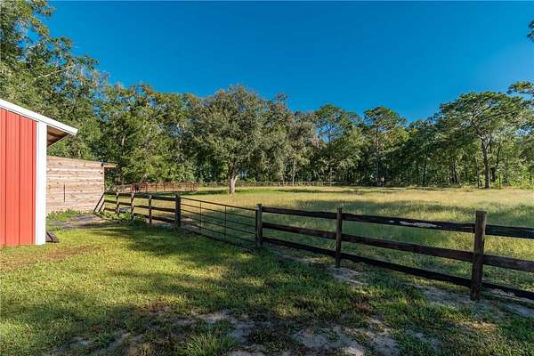 Owner motivated! Situated just 4 miles from the World Equestrian Center (WEC), this 4.16-acre mini-farm is move-in ready with horses and a great canvas for building your small horse haven. Fully perimeter fenced and gently shaded by mature trees, the farm features a 6-stall horse barn with an attached garage that could be used as a workshop or tack/feed storage. A total of 4 paddocks are in place, as well as a 9 panel round pen for additional year-round training options. The residence is a well-maintained 3-bedroom, 2-bath double-wide manufactured home offering over 1,100 square feet of comfortable living space. Inside, a practical layout includes a cozy living room, an open kitchen with built-in appliances, and a dedicated dining area. The home features vaulted ceilings, vinyl and carpet flooring throughout, and lots of natural light throughout. A newly installed metal roof ensures long-term durability, while the covered rear porch provides a quiet retreat overlooking the expansive yards. Whether you're looking to reside full-time or simply stay close to your horses, this home delivers comfort and function in equal measure. This unique mini-farm is a fantastic option for those looking to make further customizations or simply enjoy Ocala's vibrant horse community as-is!