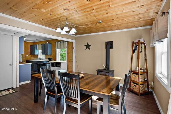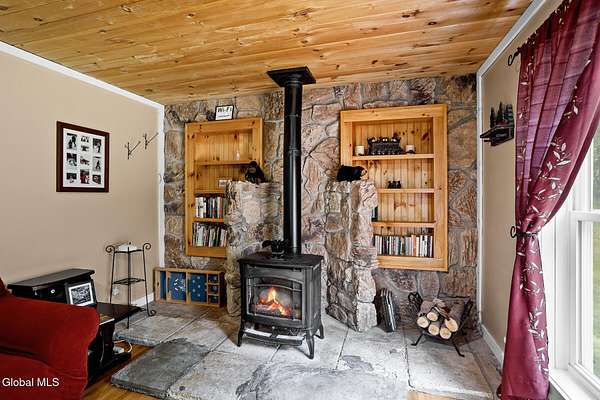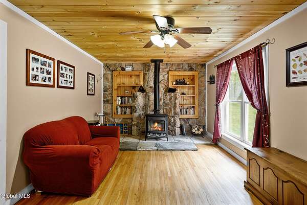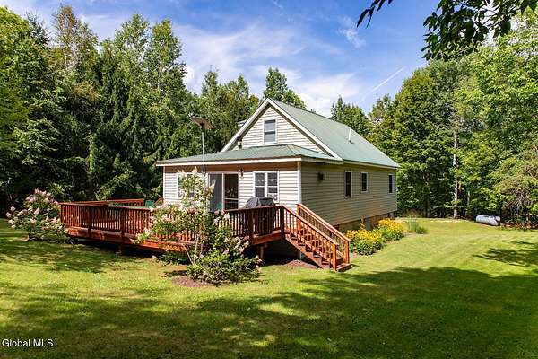 Charming Adirondack year-round retreat with 3 bedrooms, 2 full baths, and 1,416 sq ft of updated living space. Features include beautiful wood ceilings and floors, a striking stone wall with built-ins and gas stove, dual propane + electric heat, and a private wooded lot complete with a rustic lean-to and unique fire pit, perfect for gathering with friends or gazing at the stars on clear mountain nights. Perfectly situated just 8 miles to Gore Mountain, minutes from the Hudson River, 13th Lake, and the Village of North Creek, this home offers more than comfort, it's a lifestyle. Spend summers paddling the Hudson, fishing or boating on nearby lakes, and hiking trails to Moxham Mountain or OK Slip Falls. In winter, enjoy world-class skiing and gondola rides at Gore, or join in on seasonal festivals like Indian Lake's Snocade. With charming shops, cozy cafes, and a vibrant arts scene nearby, this retreat blends adventure, culture, and Adirondack tranquility all year long. Bonus room in lower level currently used as 4th bedroom. Home being sold turnkey with furnishings.
