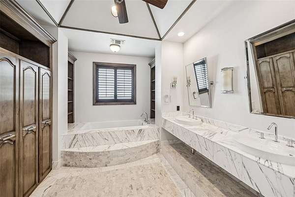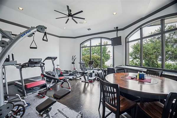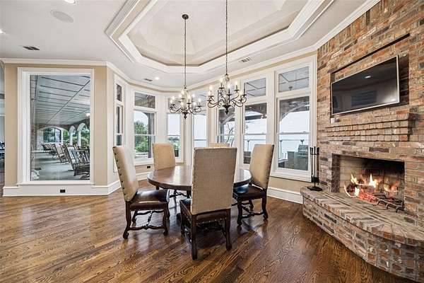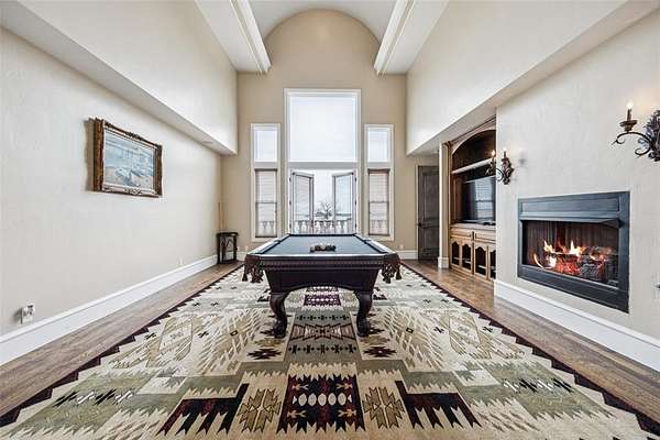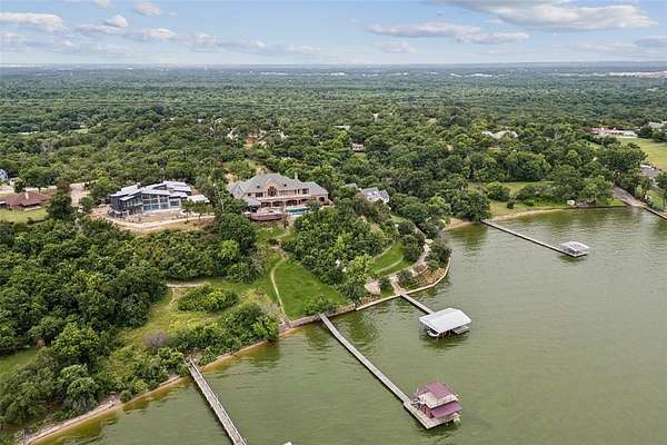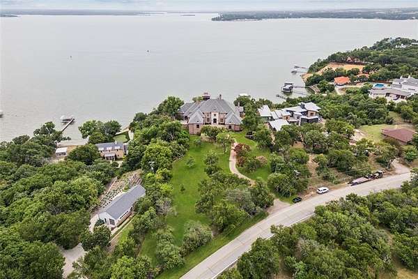 Experience the pinnacle of lakeside luxury in this extraordinary custom home nestled on the shores of Eagle Mountain Lake. Thoughtfully designed for both elegant entertaining & everyday comfort, this expansive residence boasts 5 bdrms, 6 full baths, 2 half baths & an unmatched blend of modern amenities. From the moment you step through the grand entrance, panoramic lake views captivate your attention through the family room’s expansive windows. To one side, a formal dining space sets the tone for special occasions, while to the other, the secluded primary suite serves as a private sanctuary. This lavish retreat features a cozy sitting area w-a see-through FP, dual spa-inspired bathrooms, heated floors, a wet bar, 2 large WIC's + a connected fitness room. A steam shower, safe room & private laundry area complete the suite’s luxurious amenities. Gourmet kitchen is a culinary masterpiece, fully equipped w-top-of-the-line Viking Apps including a 6-burner gas cooktop, double ovens, full-size BI wine fridge, two dishwashers + a spacious island w-a trough sink & foot-pedal-controlled faucet. Lighted cabinetry, pantry & a BI fridge elevate both style & function. A secondary suite w-its own kitchen + full bath provides ideal accommodations for guests. Upstairs, 3 additional bedrooms accompany a large game rm, media rm + private office—each offering access to balconies overlooking the lake. Step outside & relax in the infinity-edge pool, cook up a feast in the outdoor kitchen, unwind by the fire pit, or rinse off in the outdoor shower. The covered patio is enhanced w-retractable shades for all-season comfort & a boat dock trolley offers easy lake access. There’s even a dedicated dog run. Smart home is loaded with high-end features including Control4 automation, foam insulation, water filtration system + abundant storage. Car enthusiasts will appreciate the three 2-car garages—including one located beneath the main garage w-internal access. Enjoy unrivaled lakeside lifestyle.