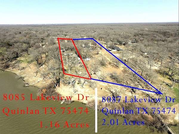 From Quinlan, Hwy 276E to Cr 3605 R, follow several miles to 1,000 Oaks Subd stay straight onto sunrise follow to 8087 Lakeview Dr