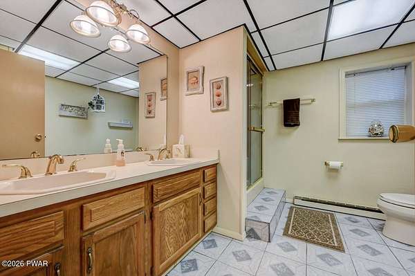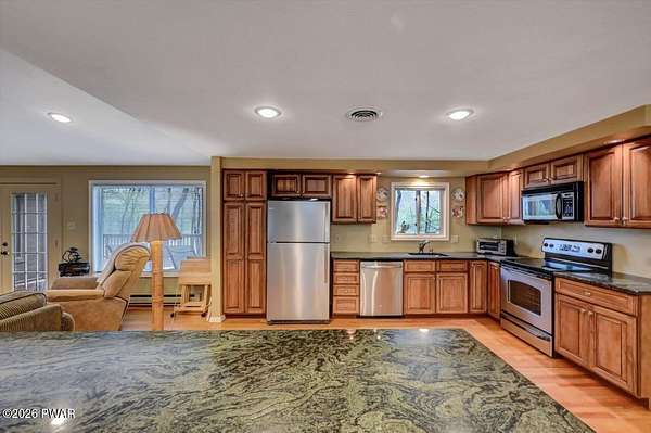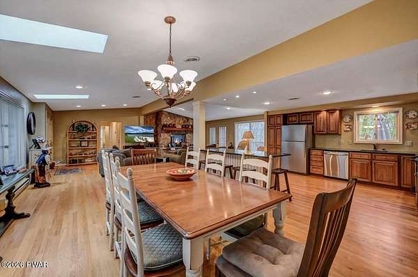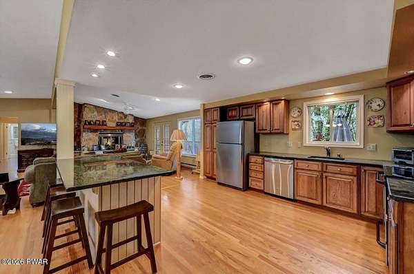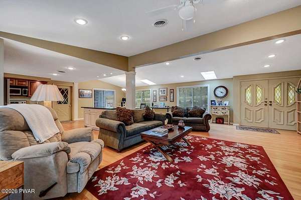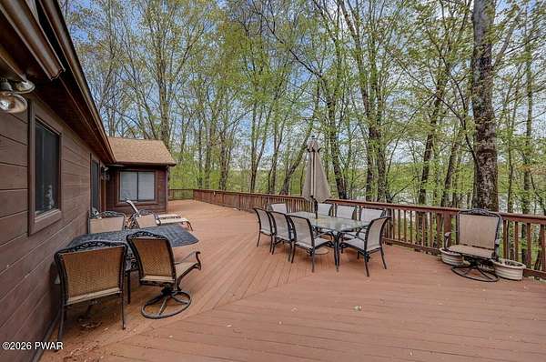 Are you ready to make your lakehome memories? So spacious, everyone can visit. A lakefront unlike any other! A sprawling ranch on nearly 2 acres with 250 feet of lakefront footage. A paved pathway to the lake. Entertain so many, or have a quiet moment on your dock, on your deck or cozy by your double sided wood burning fireplace. Updated kitchen and sought after open concept kitchen, living room and dining room. 1500 sq ft of composite decking with views of the lake from every angle. Primary suite with a luxurious bathroom including oversized jacuzzi tub and bidet. When you entertain, the party can continue in your full finished, walk out basement with a wet bar and wine storage! Cedar lined room with potential to make sauna or use as closet. 3 Car garage with so much storage. So close to Hemlock Farms wonderful amenities - pools, tennis, pickleball, bocce...Welcome home! Hemlock Farms is a year round recreational community with so many included amenities - pools, lakes, beaches, gym, bocce, tennis, pickleball, 24 hour security... Lords Valley Country Club is a private non-profit club located within the gates of Hemlock Farms with a USGA- rated championship 18 hole golf course, dining, Har-tru tennis, pickleball. Contact LVCC directly for rates and membership. Be well! Be happy! Be in Hemlock! (r)