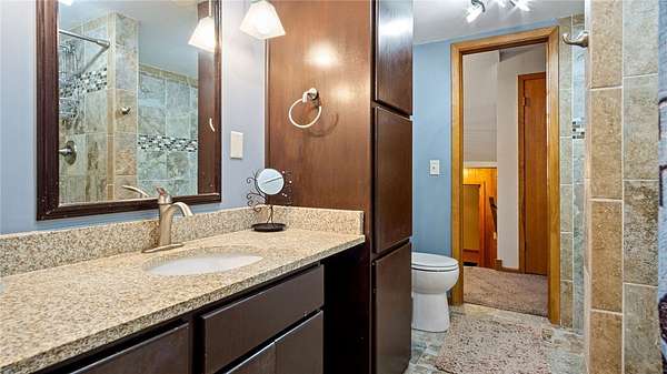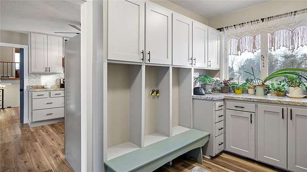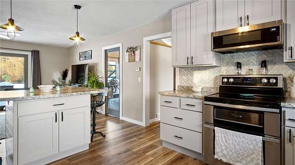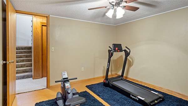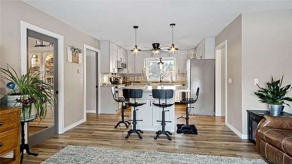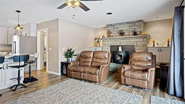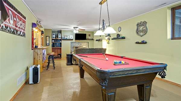 Welcome home to space, comfort, and modern updates! This stunning 3,800 sq ft property features 4 bedrooms, 2 full baths, and 2 partial baths, including a spacious owner's suite with walk-in closets. The kitchen, bathroom, and mudroom were beautifully updated in 2024, along with fresh flooring and paint throughout the home. Enjoy year-round comfort with dual heating (LP + electric forced air), central air, a wood-burning fireplace, and a pellet stove. Set on 3.77 private acres, the backyard is perfect for hosting parties, playing lawn games, or watching wildlife. Relax on the wood deck or concrete patio, and rest easy with a storm room and a pre-inspected home. Sweet game room in lower level with pool table (included), bar and fireplace. Separate entrance from garage to lower level may be ideal for a day care or other business. All this and and within walking distance to schools! Pre inspected by Ideal Home Inspections and Seller is including a 12 month ShieldPlus Home Warranty from AHS!