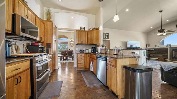 ASSUMABLE 4% MORTGAGE - A RARE OPPORTUNITY THAT COULD SAVE YOU THOUSANDS PER YEAR! For qualified buyers, this exceptional home offers the chance to assume a current mortgage at just 4%-a rate that could make the difference between buying your dream property and missing out. In today's high-interest market, opportunities like this are incredibly rare, and the savings are substantial. Now, pair that with a show-stopping residence set against the iconic Colorado National Monument, and you have an unmatched opportunity. This 4-bedroom, 3-bathroom, 2,994 sq ft home is perfectly positioned on a quiet, south-facing lot just minutes from town, offering the ideal balance of privacy, views, and convenience. Inside, the home showcases a thoughtful split floor plan and a standout bonus room upstairs with its own bathroom and private HVAC system-perfect as a 5th bedroom, guest suite, or office. You'll find hardwood flooring on the main level, laminate upstairs, and new carpet in the bedrooms (2021). The kitchen features new stainless appliances (2025), ample cabinetry, and a walk-in pantry converted from garage storage. Additional highlights include a pro-grade tankless water heater, smart thermostats, LED lighting, central vacuum, and pre-wiring for whole-house audio and security-including the back patio. Over $200K has been invested in landscaping: a hot tub on its own patio, fenced dog yard, rain-ready patio enclosure, commercial sprinkler system, and a professionally engineered drainage system with French drains and a piped, covered ditch. Even the holidays are easier with a dedicated Christmas light circuit and under-eave outlets. The 36' x 48' custom shop is fully insulated, pellet-stove heated, and large enough for a full-size RV. Outfitted with 50 AMP and 30 AMP camper hookups, 220V welding power, pro lighting, concrete slab under the awning, and a mezzanine for storage. Over $200K was invested in the shop alone. With luxury upgrades, monument views, flexible space, and an assumable 4% mortgage, this home is more than extraordinary-it's attainable.