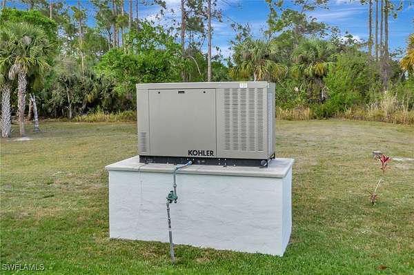 Welcome to your dream home! This stunning 3-bedroom, 3-bathroom residence is nestled on a spacious 1.5-acre parcel, offering ample privacy and room to roam. The main house features two master bedrooms with ensuite baths, providing ultimate comfort and luxury. Guest bath features a tub/shower combo. The kitchen is equipped with stainless steel appliances, granite counters, and a reverse osmosis system, ensuring clean and fresh water. The home is designed with impact windows and Storm Smart hurricane fabric for added safety and peace of mind. Step outside to enjoy the heated pool with an overflowing spa, perfect for relaxing and entertaining. 2 car attached garage features seven 70" x 38" built-in cabinets. ***In addition to the main house, there's a generous 1,600 sq. ft. detached garage with 10' CBS walls, 8' high overhead doors, built-in storage cabinets with shelves, ( 8' H x 14' W x 2' D,) air conditioning, a workshop, a massive attic, and 100 amp electric service featuring interior and exterior LED lighting. This space is ideal for additional vehicles, hobbies, or storage. This property features a 140' deep well. You'll never have to worry about power outages with the 38kW whole house generator, which is connected to a buried 500-gallon propane tank, ensuring reliable power to both the home and the detached garage. This property truly has it all - comfort, convenience, and plenty of space for all your needs. Don't miss out on this incredible opportunity to own a piece of paradise! This home is not located in a flood zone.