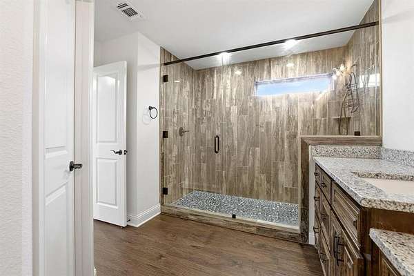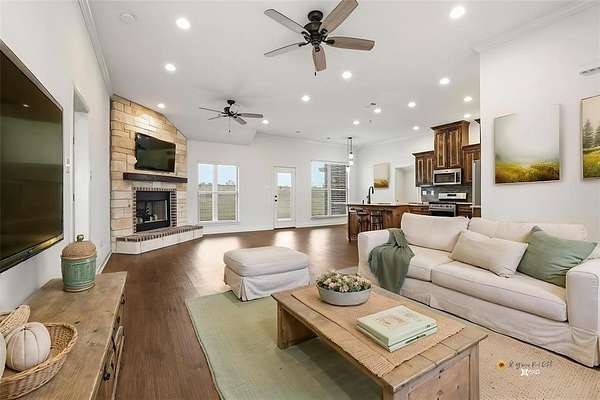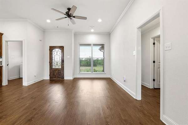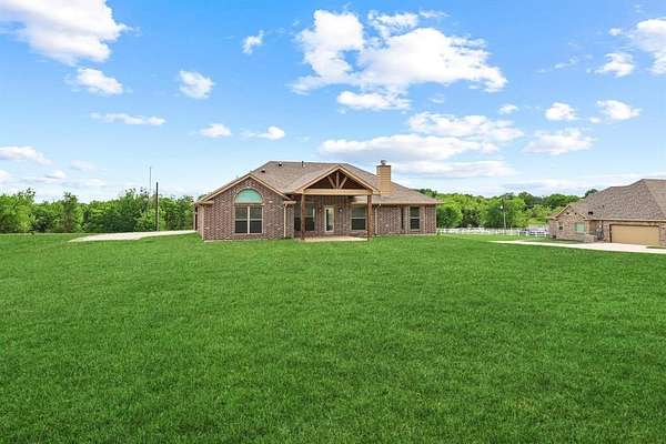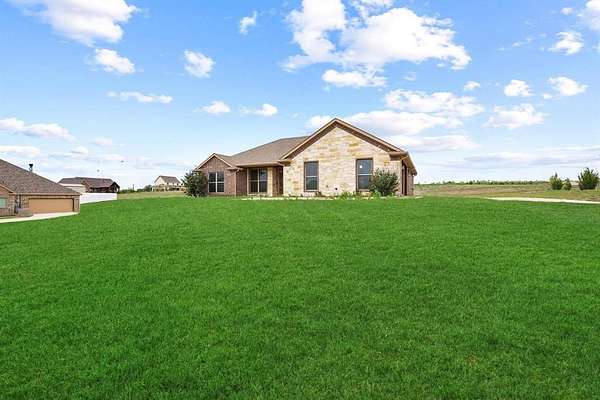 Set on a picturesque 1.88-acre homesite in Howe TX. This beautifully maintained ONE STORY home offers the perfect balance of space, comfort, and high end finishes. AT 1556 square feet for those buyers seeking room to breathe without the upkeep of a large property, this is that rare “just right” acreage keep reading. Enjoy peaceful views of a charming pond and plenty of rear outside space to make your own. Inside, the home feels like new with rich wood flooring, a light and inviting layout, and true move-in-ready condition. The thoughtfully designed single-story floor plan is ideal for those looking to downsize without compromise, offering easy living and seamless flow. The kitchen is a standout with elegant cabinetry, upgraded appliances, a gas cooktop, pantry, refrigerator and a huge island with bar seating. Step outside to a spacious covered back patio—with no neighbors on top of you there is privacy, perfect for relaxing evenings, entertaining guests, or simply taking in the tranquil setting. Get that smoker out for year round use. The primary bedroom is a WOW. High ceilings, walk in closet, and an amazing Gotta See shower for this size square foot home. Pebbled floor and stone with frameless glass. The double vanities and upgraded cabinets tie in the space with elegance. The 2 ancillary bedrooms are split from the primary allowing a wing for the primary and a wing for the other 2 bedrms. If you’ve been searching for a one story property with manageable acreage and a touch of country charm, this is a property to check out. Howe is an awesome community about 12 miles from Sherman and 25 miles from McKinney. Oh make sure to tour at dusk to catch the beautiful sunsets. Get the country life without sacrificing city amenities. Refrigerator and washer dryer included.