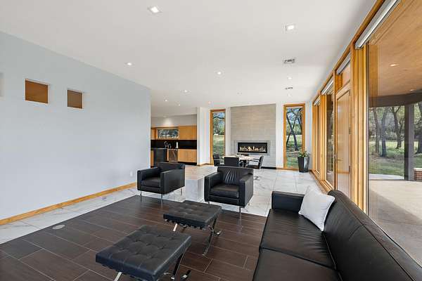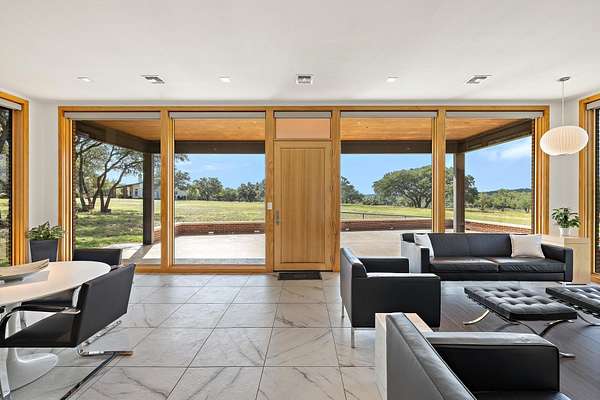 Architectural Masterpiece Nestled on 11+/- Acres in the Heart of the Hill Country Welcome to 8091 Miller Creek Loop-a striking modern retreat just minutes from both Johnson City and Blanco, ideally situated about half a mile off Hwy 290/281. Set on 11+/- scenic acres, this custom-built residence offers a rare blend of architectural distinction and refined luxury in one of the Texas Hill Country's most desirable areas. Inspired by the iconic style of Frank Lloyd Wright, this 1,664 square foot home showcases sleek contemporary lines, polarized floor-to-ceiling windows, and a seamless connection between indoor and outdoor living. Step inside to discover hand-selected quartz countertops, custom cabinetry, and recessed lighting throughout. Every inch of the home has been thoughtfully curated-from the built-in storage closets to the rich, clean finishes that exude sophistication. Premium Marvin windows and doors add both function and elegance to the overall design. The flexible two-bedroom, two-bath layout includes an office/guest space that adapts to your needs without compromising style. Enjoy wraparound porch views, a spacious 2-car garage, and a 20x12' storage shed-all surrounded by gently rolling terrain and peaceful privacy. Whether you're seeking a full-time residence or a luxury Hill Country escape, this one-of-a-kind home offers a rare opportunity to own a truly special piece of architecture in a fast-growing and highly desirable region. Need a 24 hour notice before showing!