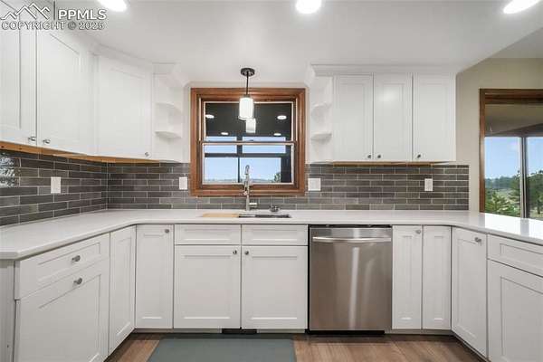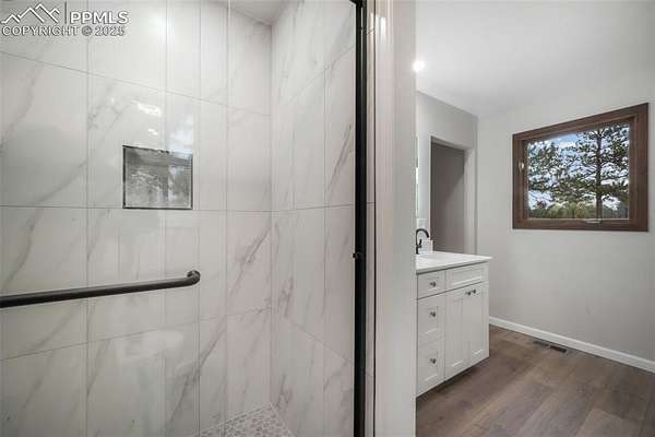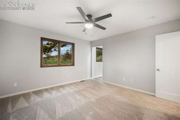 Welcome to this beautifully remodeled ranch-style home nestled on 5 serene acres in the desirable Homestead Hills community. Boasting 4 bedrooms and 4 bathrooms, this home combines timeless charm with modern upgrades for comfortable and luxurious living. You are greeted by French doors leading into a spacious entryway that flows seamlessly into the formal living and dining rooms, ideal for entertaining. Just off the family room, enjoy a bright and airy sunroom with a private deck, perfect for relaxing while taking in the breathtaking views that surround the property. The kitchen is a dream, featuring a large walk-in pantry, new flooring, and updated finishes. A main-level laundry room and powder bath add to the home's convenience and functionality. The main-level primary suite offers an en-suite bathroom and generous closet space. Two additional bedrooms and a full bathroom complete the main floor layout, providing ample space for family or guests. Downstairs, the finished walk-out basement includes a private bedroom and bathroom with a walk-in shower, as well as an expansive recreation room, ideal for a home theater, gym, or game room with abundant storage options. Recent updates include remodeled kitchen, bathrooms, and basement, all-new flooring throughout, fresh interior paint, new lighting fixtures, and ceiling fans. Technology upgrades include ethernet wiring, centralized smoke detectors, and carbon monoxide detectors. Additional improvements feature a new furnace, new garage door, new roof on both the home and workshop, and new exterior siding. This property offers stunning views in every direction, providing the peace of country living just minutes from downtown Parker. With a freshly paved road to the driveway and easy access to E-470 and Denver International Airport, this home offers the perfect blend of privacy, convenience, and modern comfort.