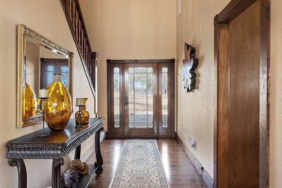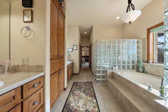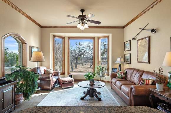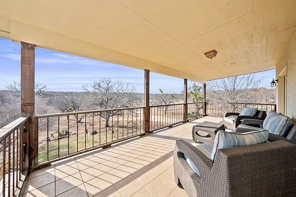 This 200 acres has everything you need. Here, you can have the seclusion and quiet privacy that is hard to find today. Hidden away from the paved farm to market road, half way into ranch, is a beautiful Austin Stone two-story home built in 2003. As soon as you walk inside this home your eyes are drawn to the accented homegrown mesquite trim that surrounds the entryway and custom staircase. The Great room is just that with a vaulted ceiling, a beautiful wood burning fireplace and lots of room. A large archway leads into the dining room highlighted with lots of windows. An inviting keeping room gets one a warm and cozy space to sit and visit right next to the open, well-equipped kitchen. Lots of cabinet and counter space here, sporting double ovens, an electric cook-to, an appliance garage and a small beverage refrigerator at the bar. Step into the master bedroom with double glass doors leading into the sun room. Enjoy the shower or soaking tub surrounded by glass blocks in the master bath. Right across the master bedroom is a comfortable home office/sitting room. An attractive powder room is between the office and utility room. The utility room has a granite countertop, a deep laundry sink and room for a deep freeze. At The end of the hall is an oversized two car garage and small workshop with lots of storage space. Step up the custom staircase where you'll find two guest bedrooms and a roomy open deck right over the sun room.