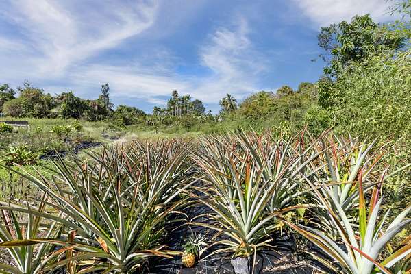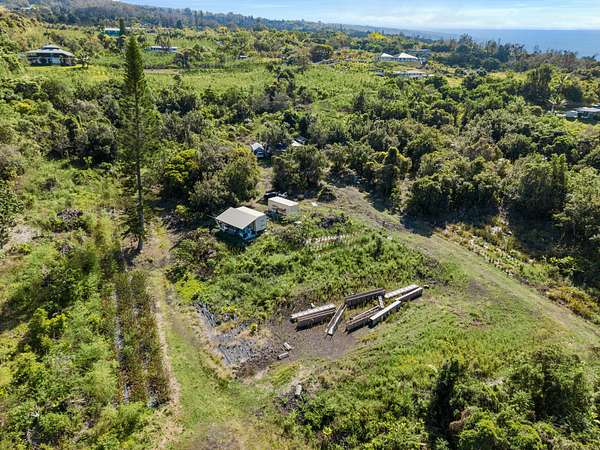 A rare and remarkable 7+ acre fully fenced South Kona farm estate with ocean views, and established agricultural income potential, conveniently located just south of Kealakekua. Gently sloping and highly usable, this A-1A zoned agricultural parcel offers huge potential, with already established privacy and productivity. The orchards include hundreds of mature macadamia nut trees, acres of white pineapples, more than 100 mango trees, plus bananas, papayas, and abundant young citrus. Cleared interior roadways allow vehicle access throughout the property, making maintenance and harvest efficient and enjoyable. Multiple gated entry points along two boundaries provide flexibility for future planning. Two unpermitted dwellings are currently used as residences. Ready for improvement or redevelopment, the unpermitted structures can be upgraded or replaced. The "coffee shack" includes a kitchen and outdoor outhouse. A separate container home features an outdoor kitchen, washer/dryer, hot water heater, and flushing toilet. County water is on site and connected, a temporary electrical pole provides power, and permitted septic and cesspool systems are in place, making this a much simpler process to build on than starting from scratch. With established plantings, existing infrastructure, and expansive usable acreage, this property offers an excellent foundation for a new custom home, full farm operation, hobby farming, agricultural investment, and/or a multi-generational living compound. Enjoy peaceful country living while remaining close to the conveniences of being a few minutes from shopping, dining, schools, and the Alii bypass to Keauhou and Kailua Kona.